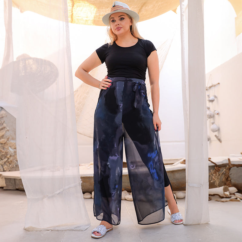 كاش مايوه شيفون بنطلون برباط فري سايز يناسب ٧٠ك إلى ١٠٠ك