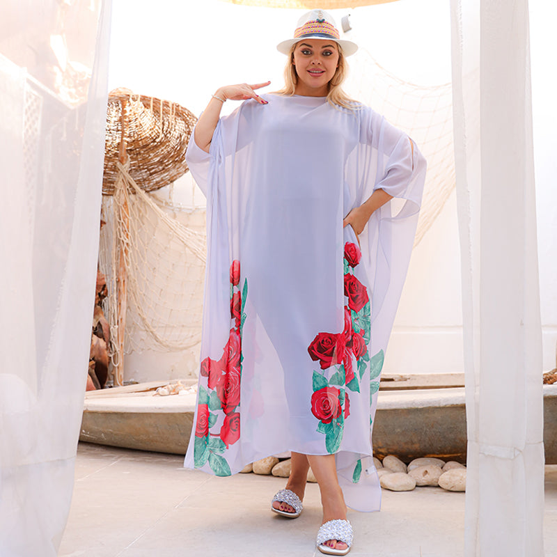 كاش مايوه شيفون ديجيتال شفاف بدون بطانة فري سايز يناسب ٧٠ك إل ١٣٠ك و الطول من الكتف ١٣٥سم