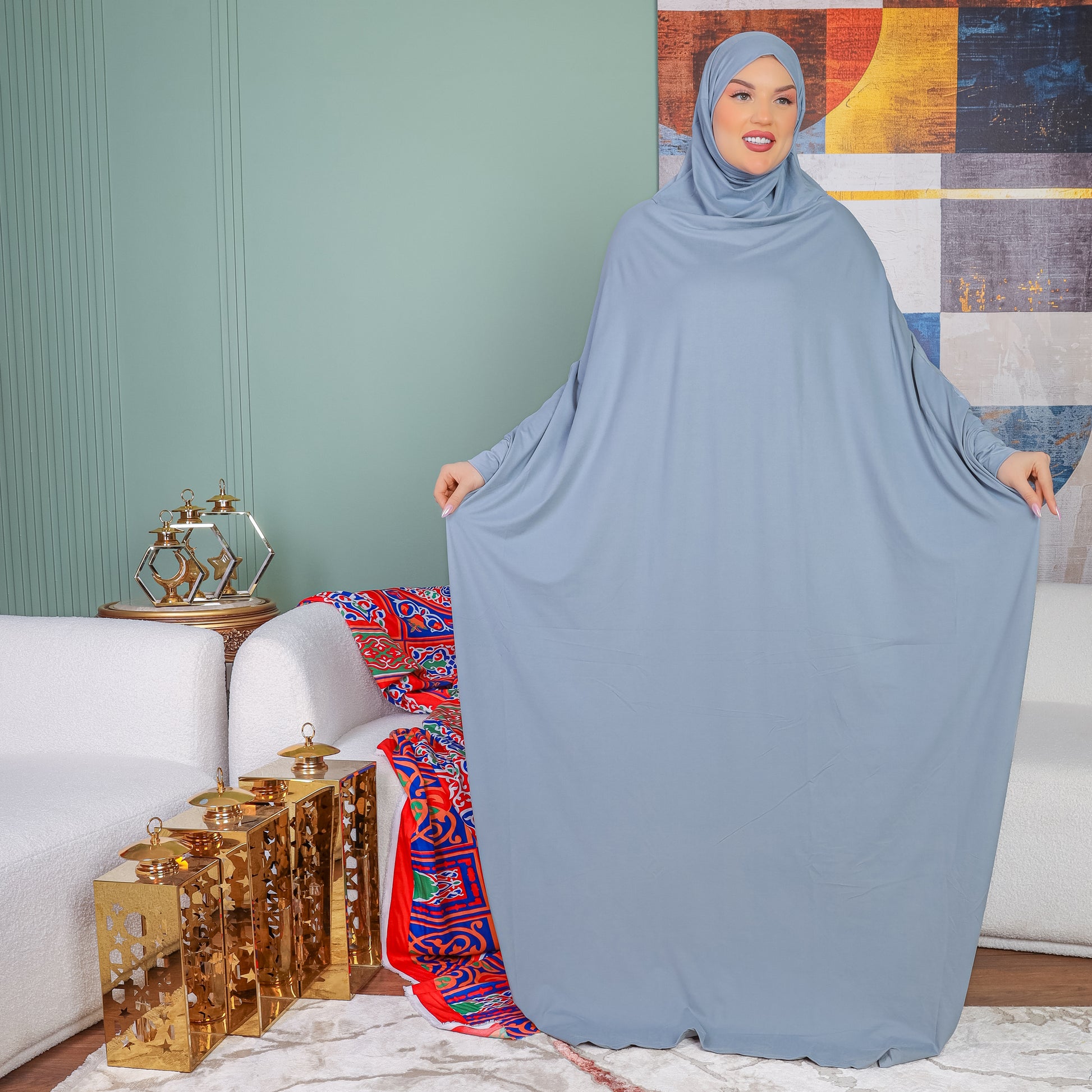 ثوب صلاة (إسدال) بحريني عملي سوفت قطن ( قطن صناعي ) فري سايز يناسب من 70ك إلى 100ك مع غطاء الرأس