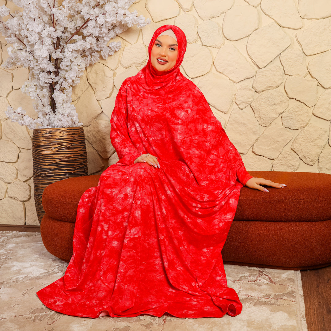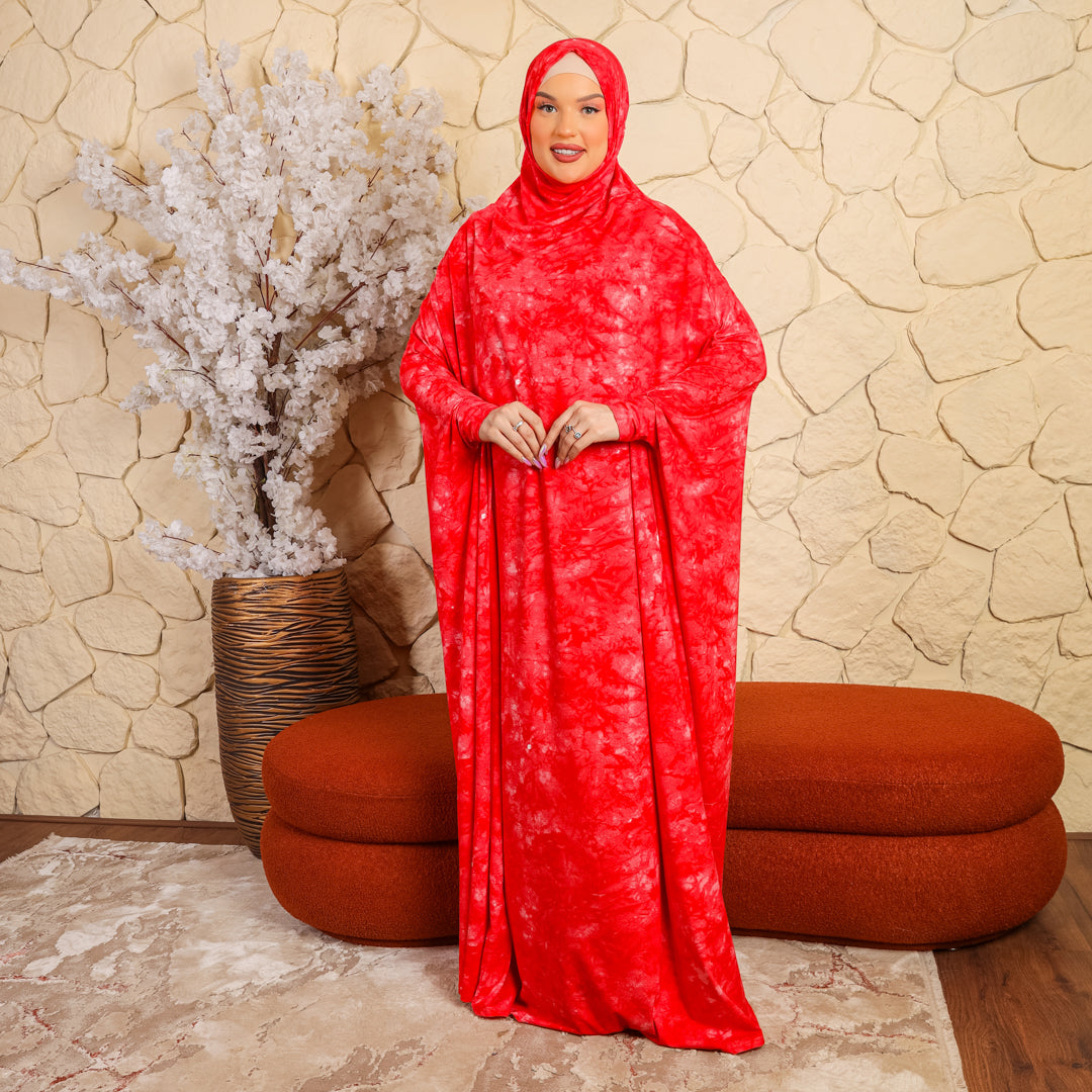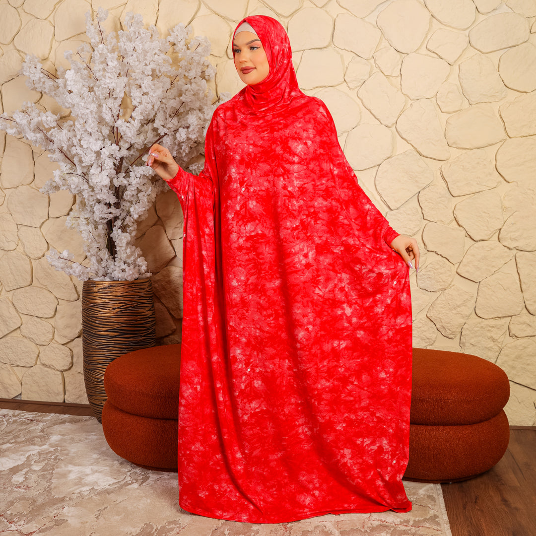 ثوب صلاة (إسدال) بحريني عملي سوفت قطن طباعة ديجيتال فري سايز يناسب من 70ك إلى 100ك مع غطاء الرأس