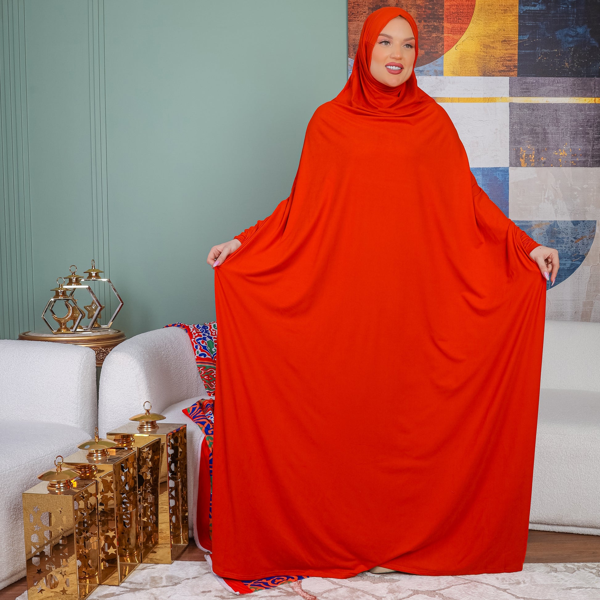ثوب صلاة (إسدال) بحريني عملي سوفت قطن ( قطن صناعي ) فري سايز يناسب من 70ك إلى 100ك مع غطاء الرأس