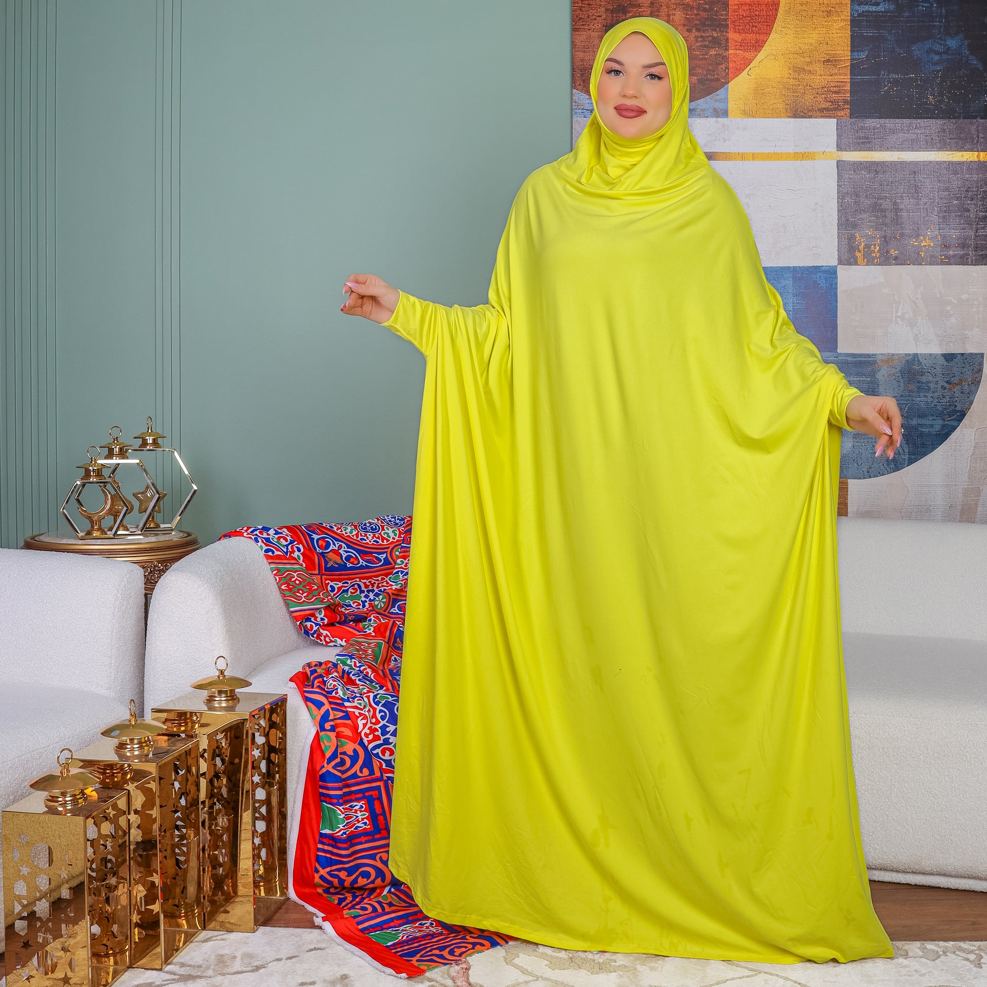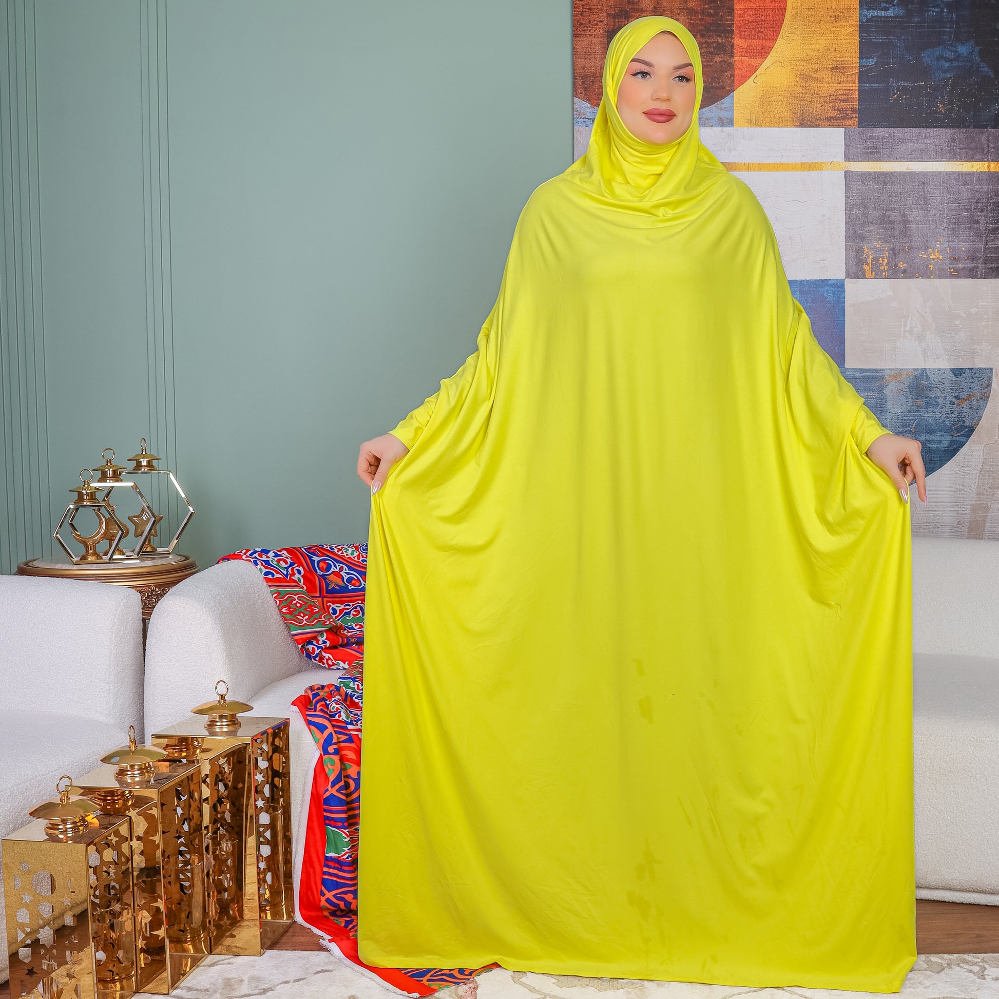 ثوب صلاة (إسدال) بحريني عملي سوفت قطن ( قطن صناعي ) فري سايز يناسب من 70ك إلى 100ك مع غطاء الرأس