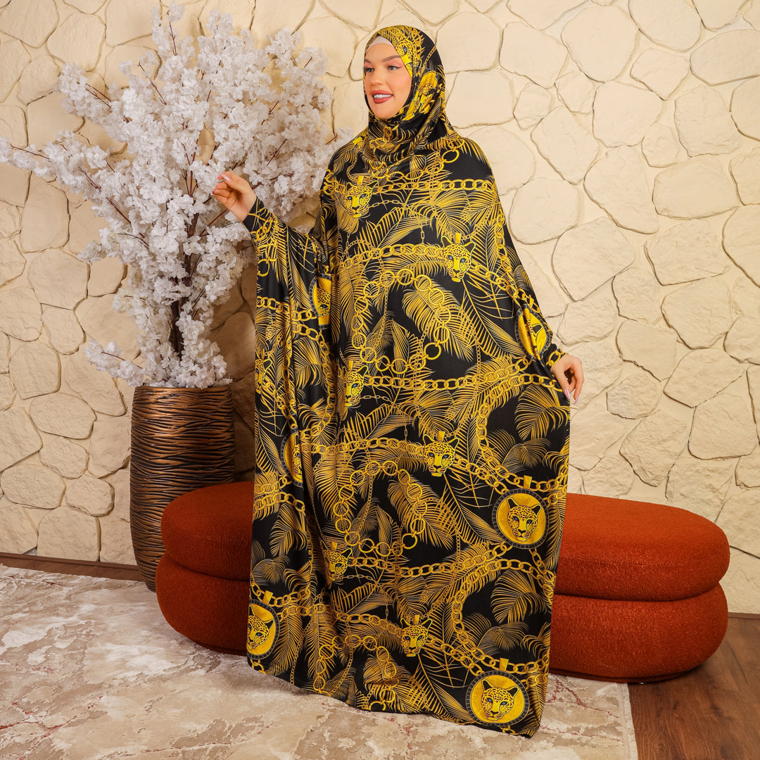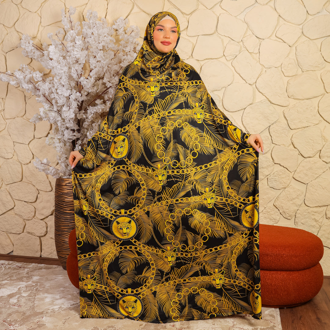 ثوب صلاة (إسدال) بحريني عملي سوفت قطن طباعة ديجيتال فري سايز يناسب من  70ك إلى 100ك مع غطاء الرأس