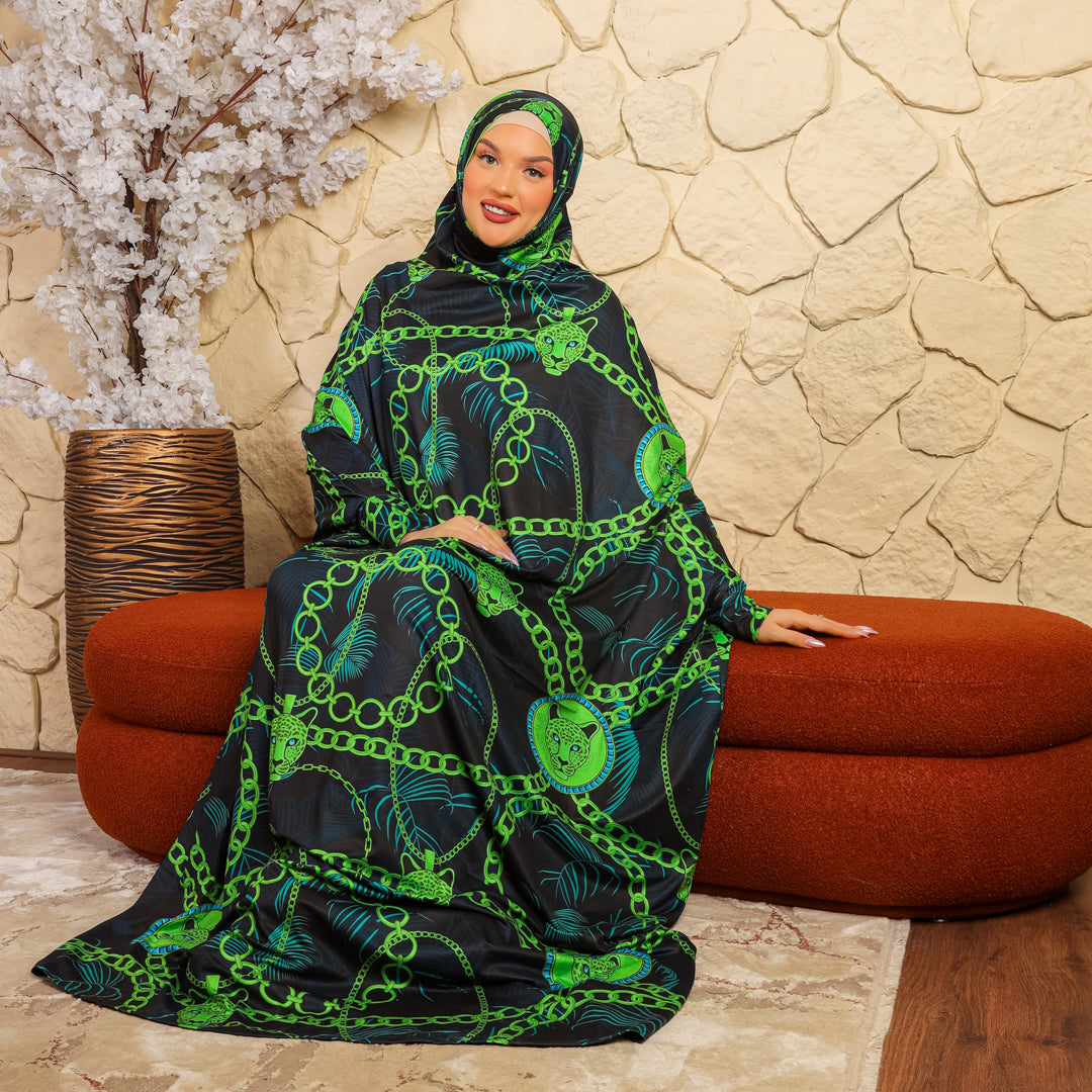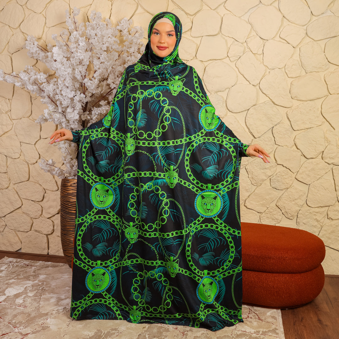 ثوب صلاة (إسدال) بحريني عملي سوفت قطن طباعة ديجيتال فري سايز يناسب من  70ك إلى 100ك مع غطاء الرأس