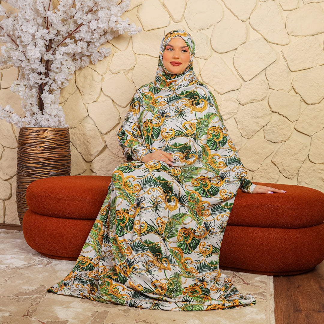 ثوب صلاة (إسدال) بحريني عملي سوفت قطن طباعة ديجيتال فري سايز يناسب من 70ك إلى 100ك مع غطاء الرأس