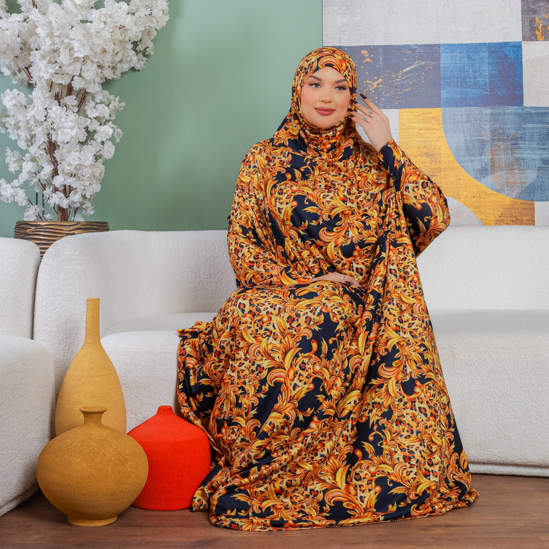 ثوب صلاة (إسدال) بحريني عملي سوفت قطن طباعة ديجيتال فري سايز يناسب من  70ك إلى 100ك مع غطاء الرأس