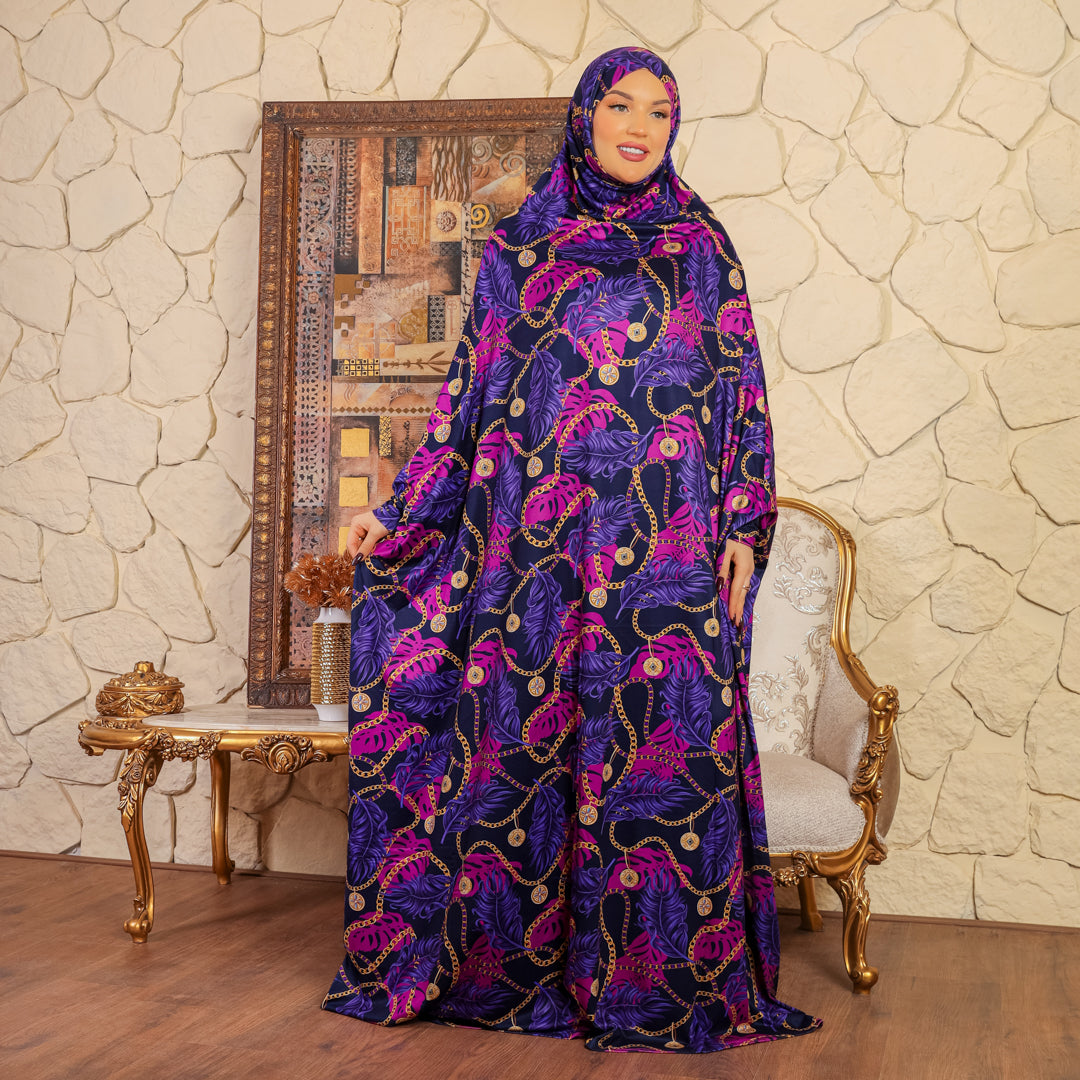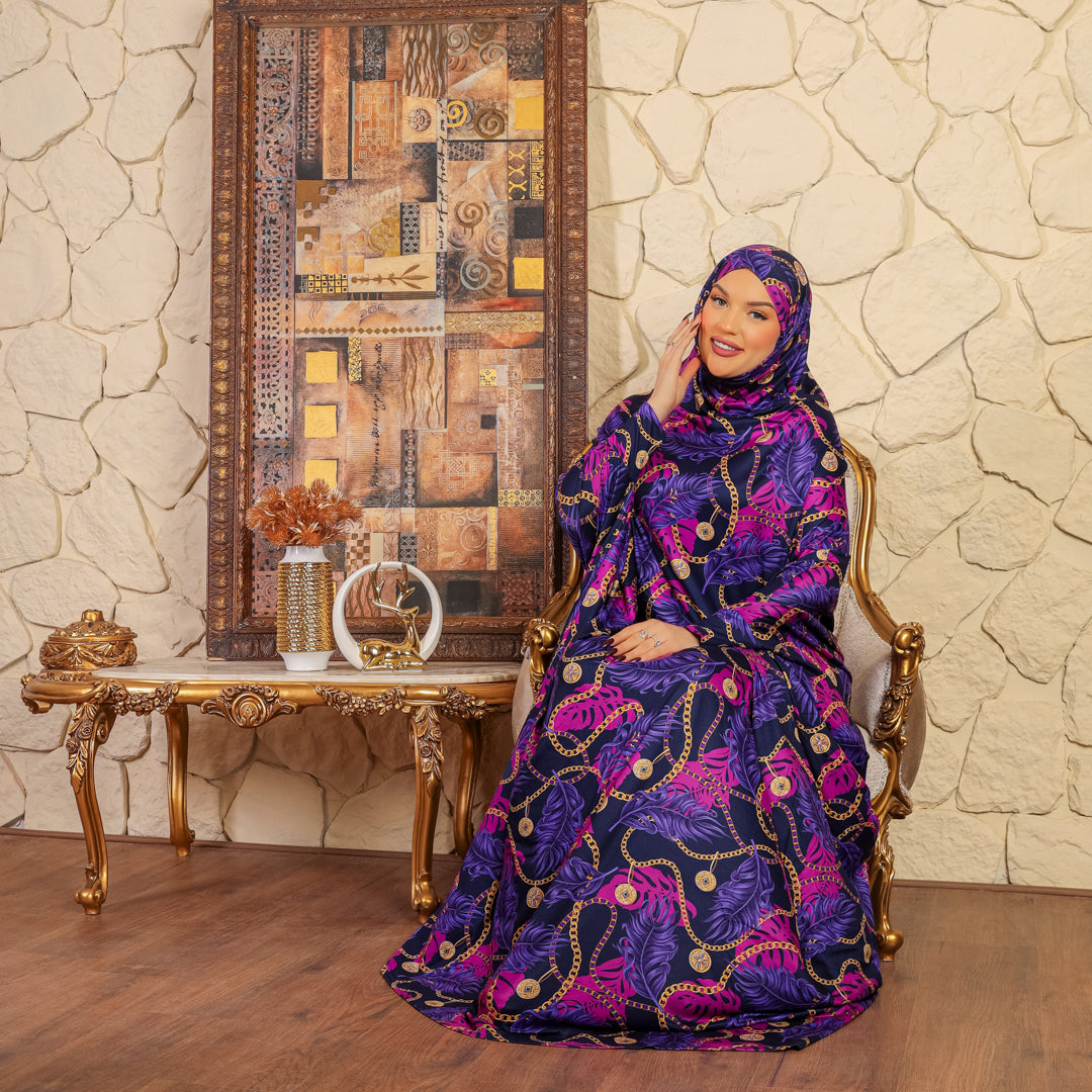 ثوب صلاة (إسدال) بحريني عملي سوفت قطن طباعة ديجيتال فري سايز يناسب من 70ك إلى 100ك مع غطاء الرأس