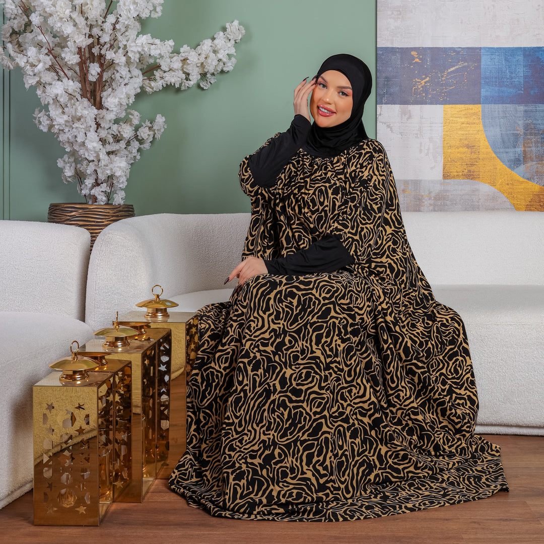 ثوب صلاة (إسدال) كريب ليكرا عملي فري سايز يناسب من٧٠ك إلي ١٣٠ك مع غطاء الرأس