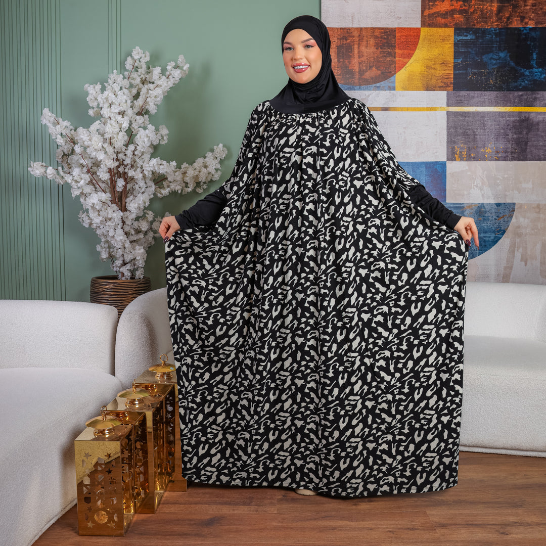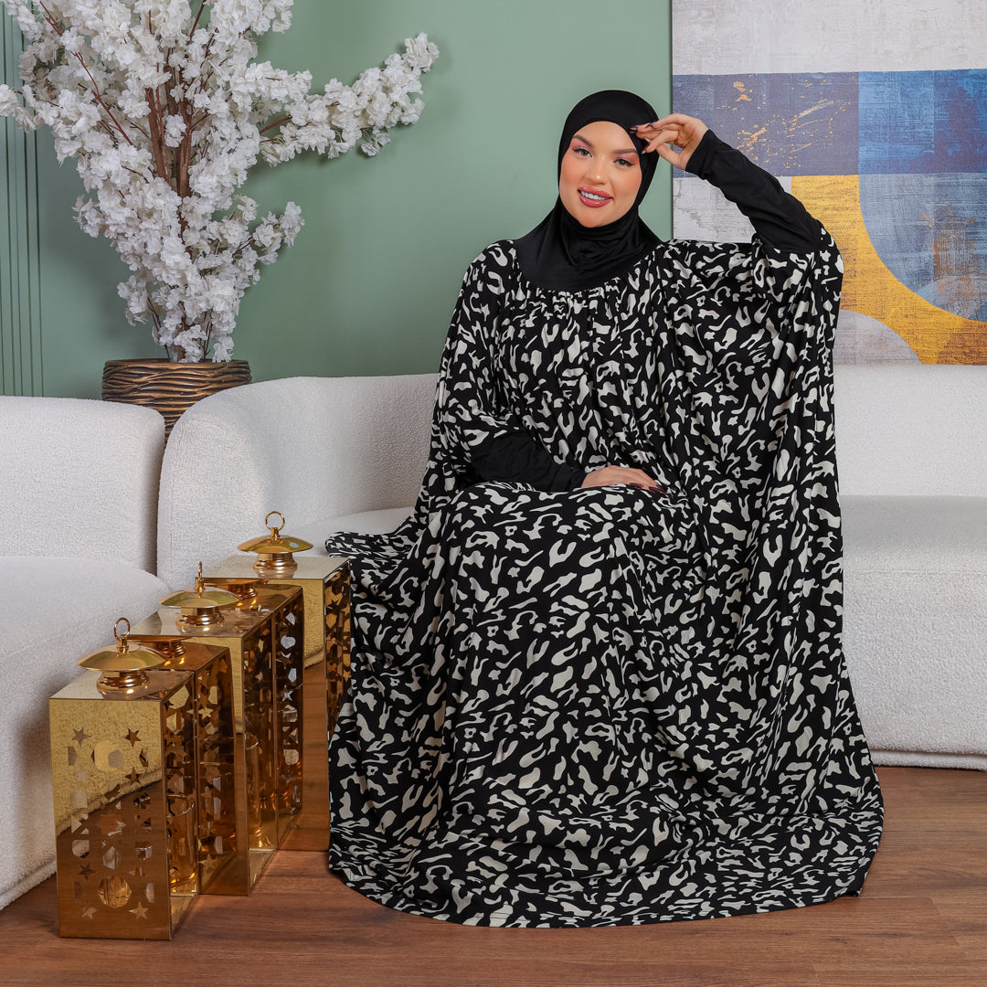 ثوب صلاة (إسدال) كريب ليكرا عملي فري سايز يناسب من٧٠ك إلي ١٣٠ك مع غطاء الرأس