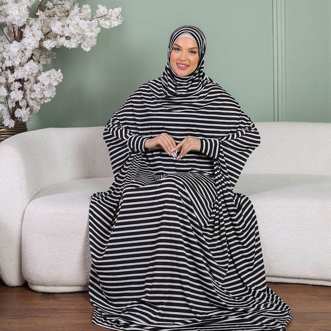 ثوب صلاة (إسدال) جيرسيه ليكرا مع غطاء الرأس فري سايز يناسب ٧٠ك إلى ١٠٠ك