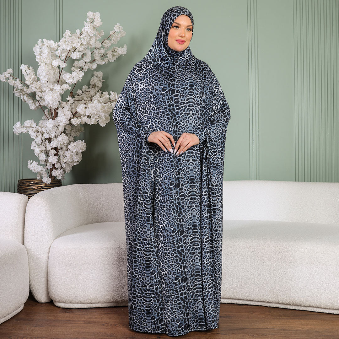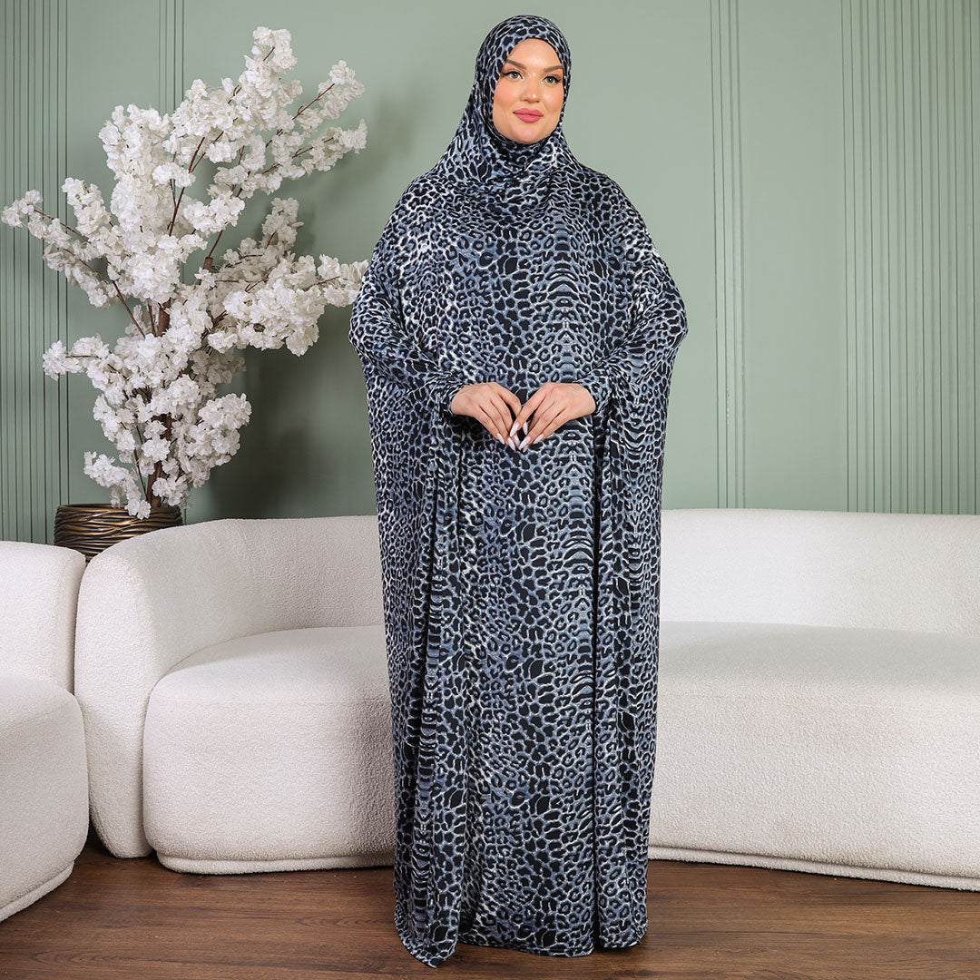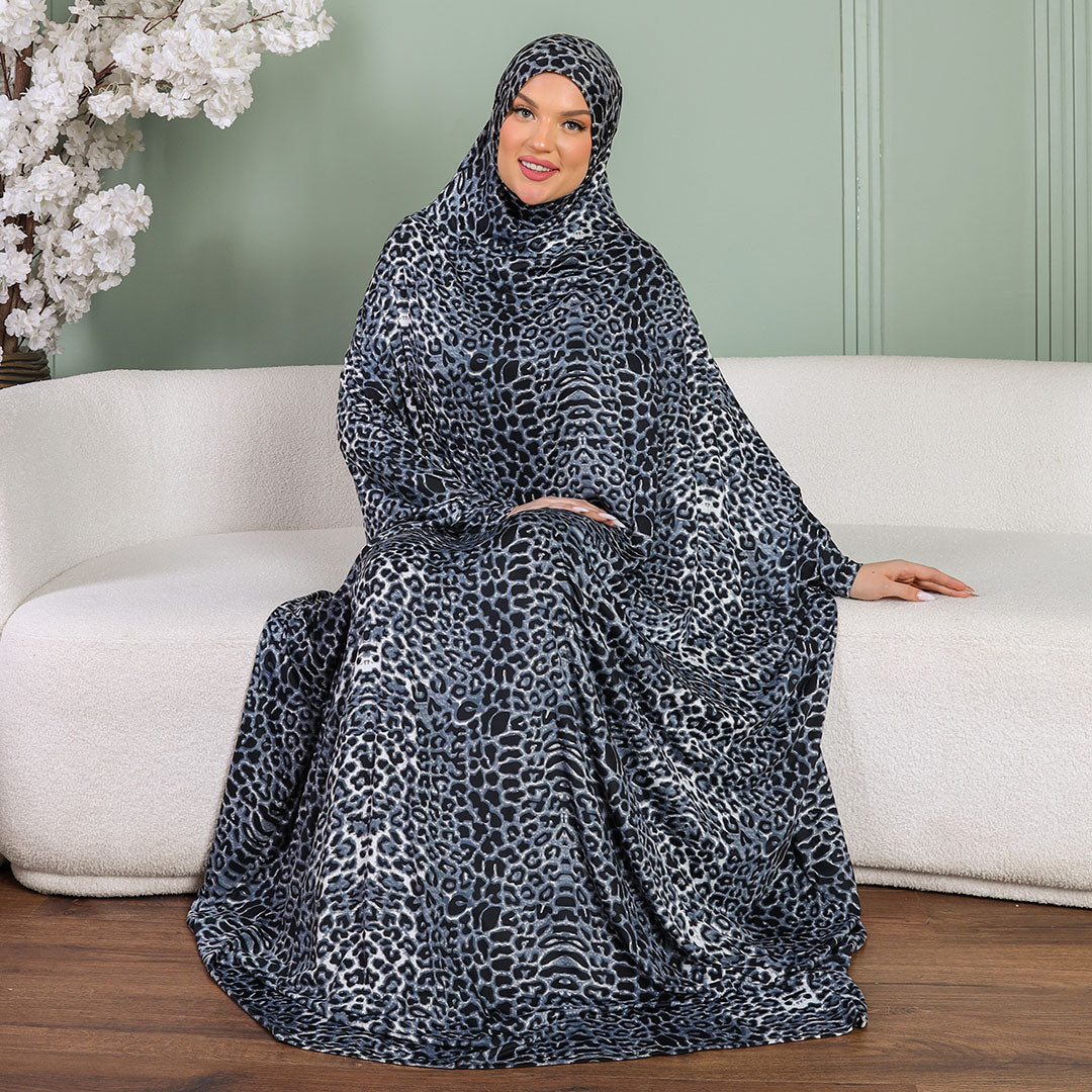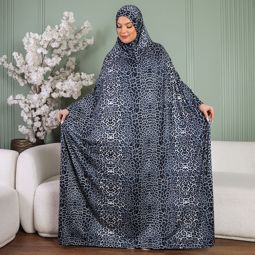 ثوب صلاة (إسدال) جيرسيه ليكرا مع غطاء الرأس فري سايز يناسب ٧٠ك إلى ١٠٠ك