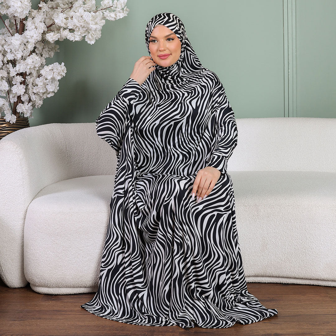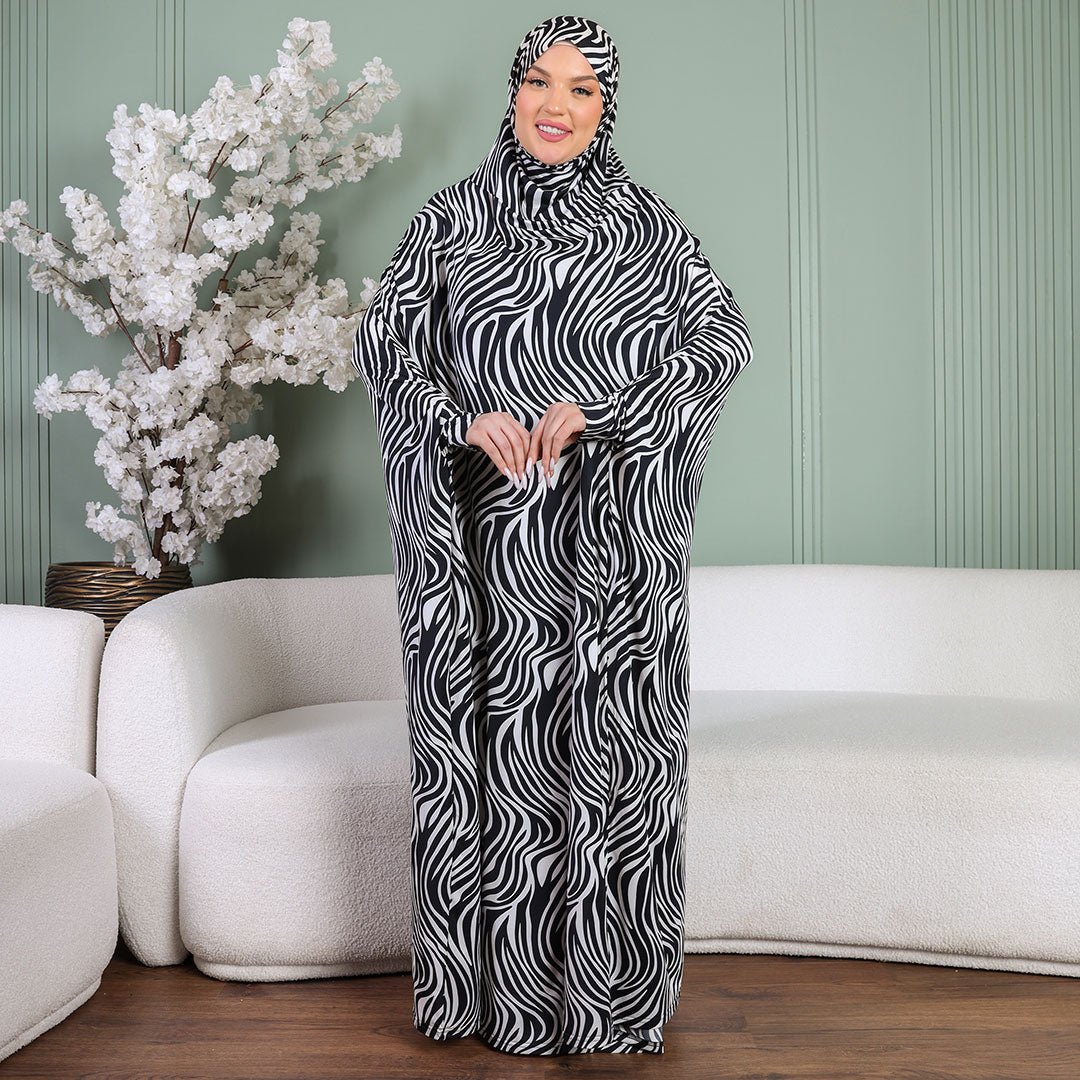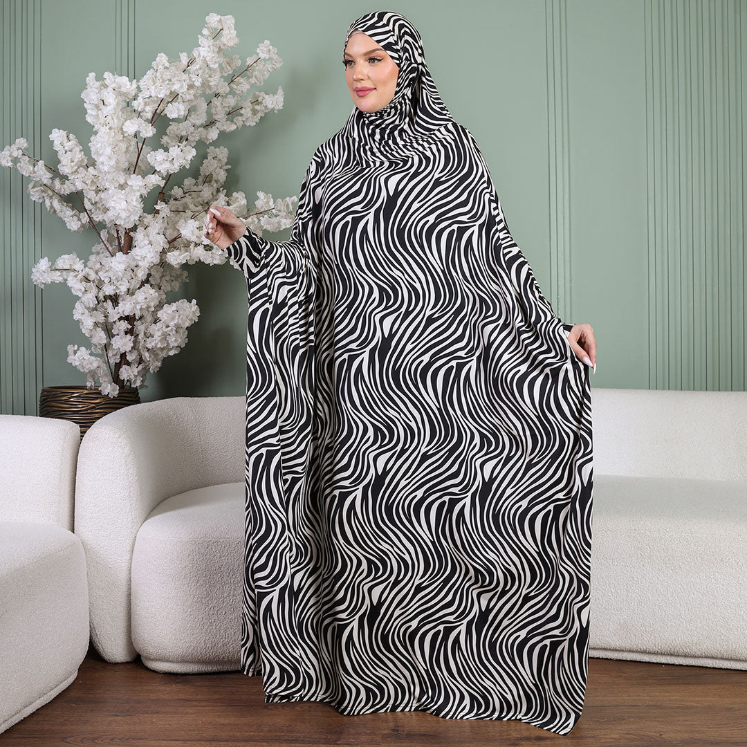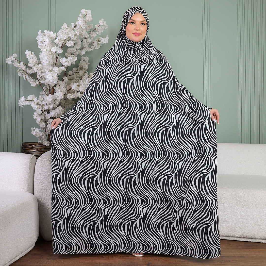 ثوب صلاة (إسدال) جيرسيه ليكرا مع غطاء الرأس فري سايز يناسب ٧٠ك إلى ١٠٠ك