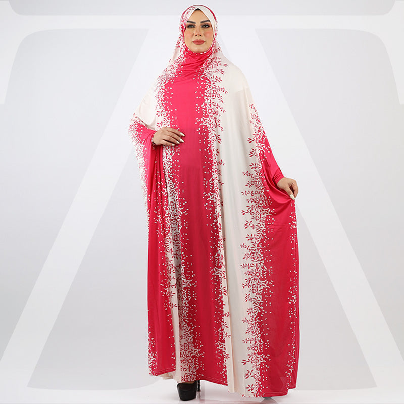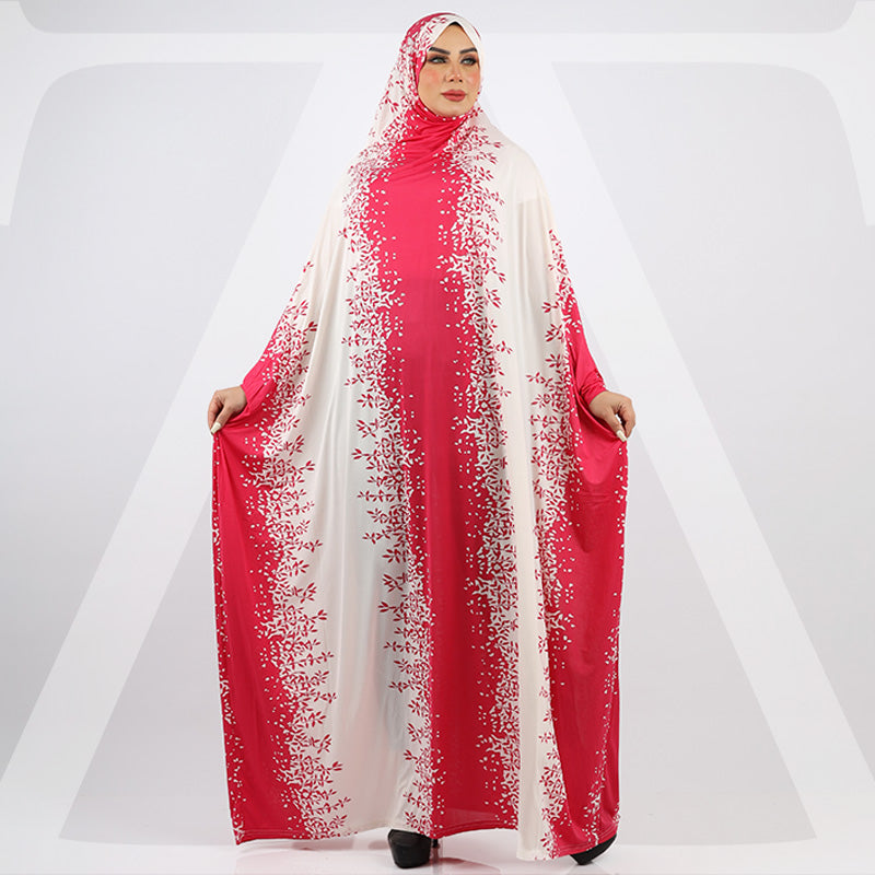 ثوب صلاة (إسدال) جيرسيه ليكرا مع غطاء الرأس فري سايز يناسب ٧٠ك إلى ١٠٠ك