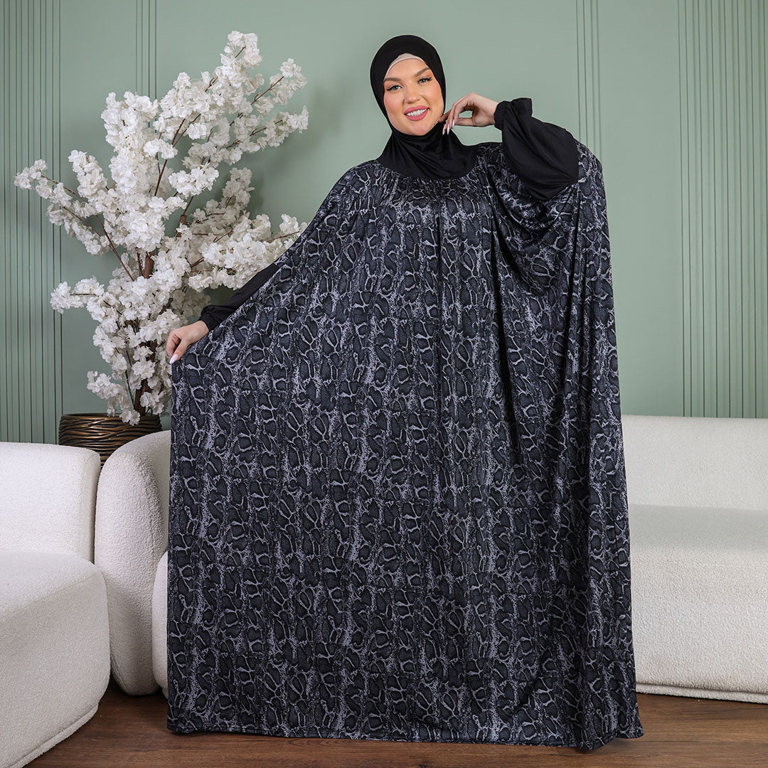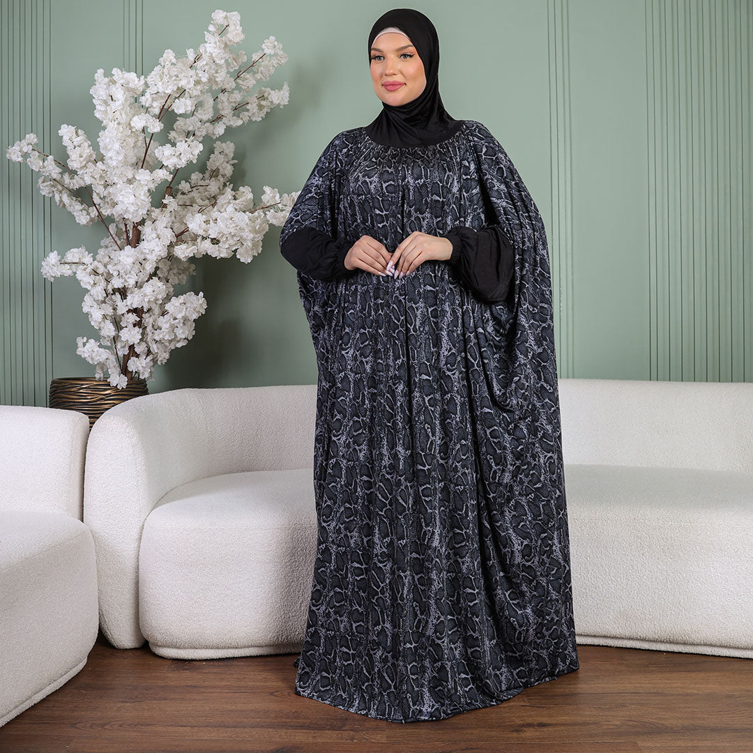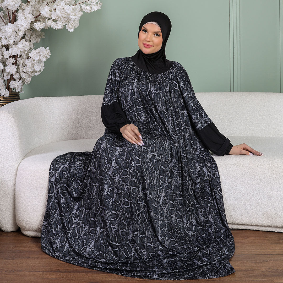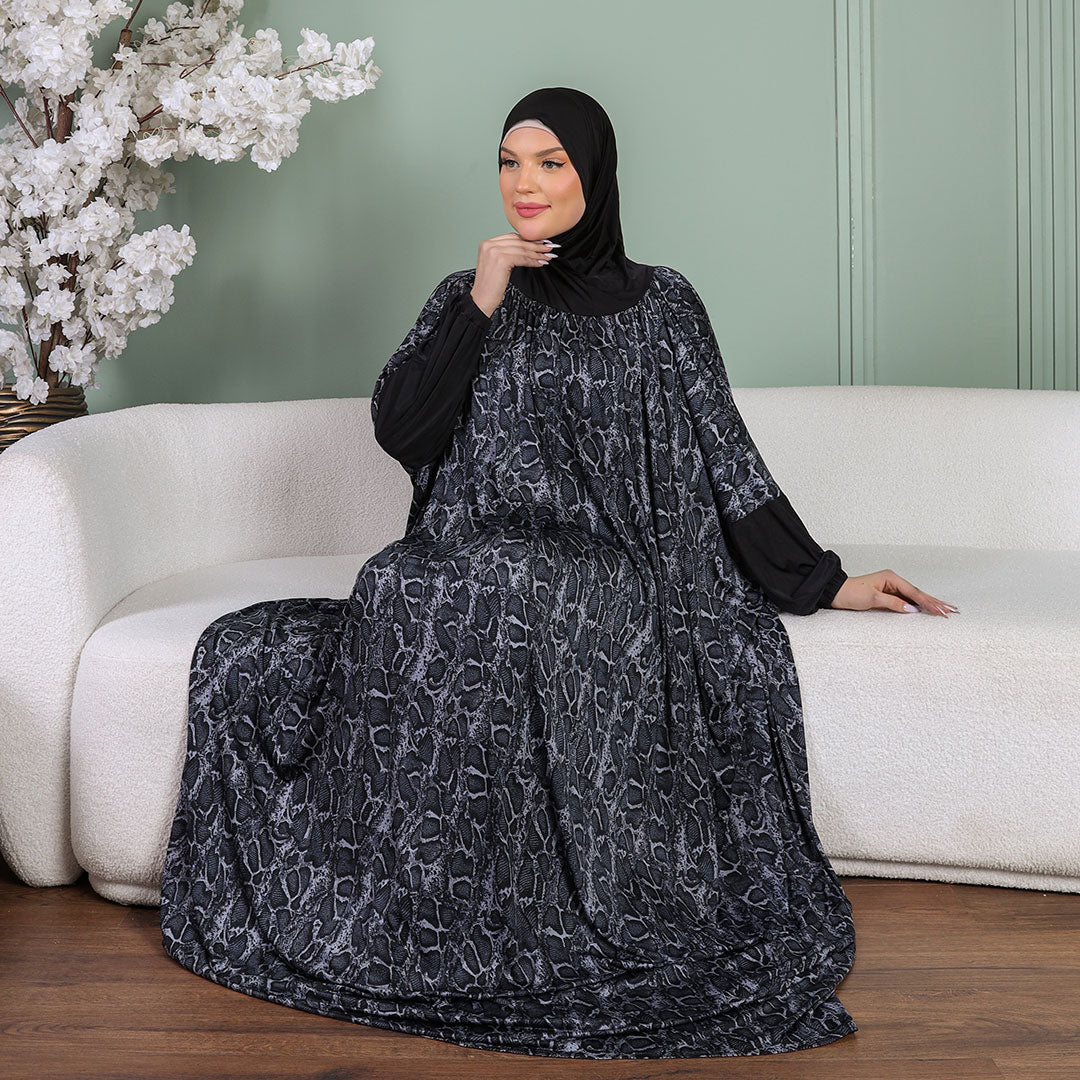 ثوب صلاة (إسدال) جيرسيه ليكرا مع غطاء الرأس فري سايز يناسب ٧٠ك إلى ١٠٠ك