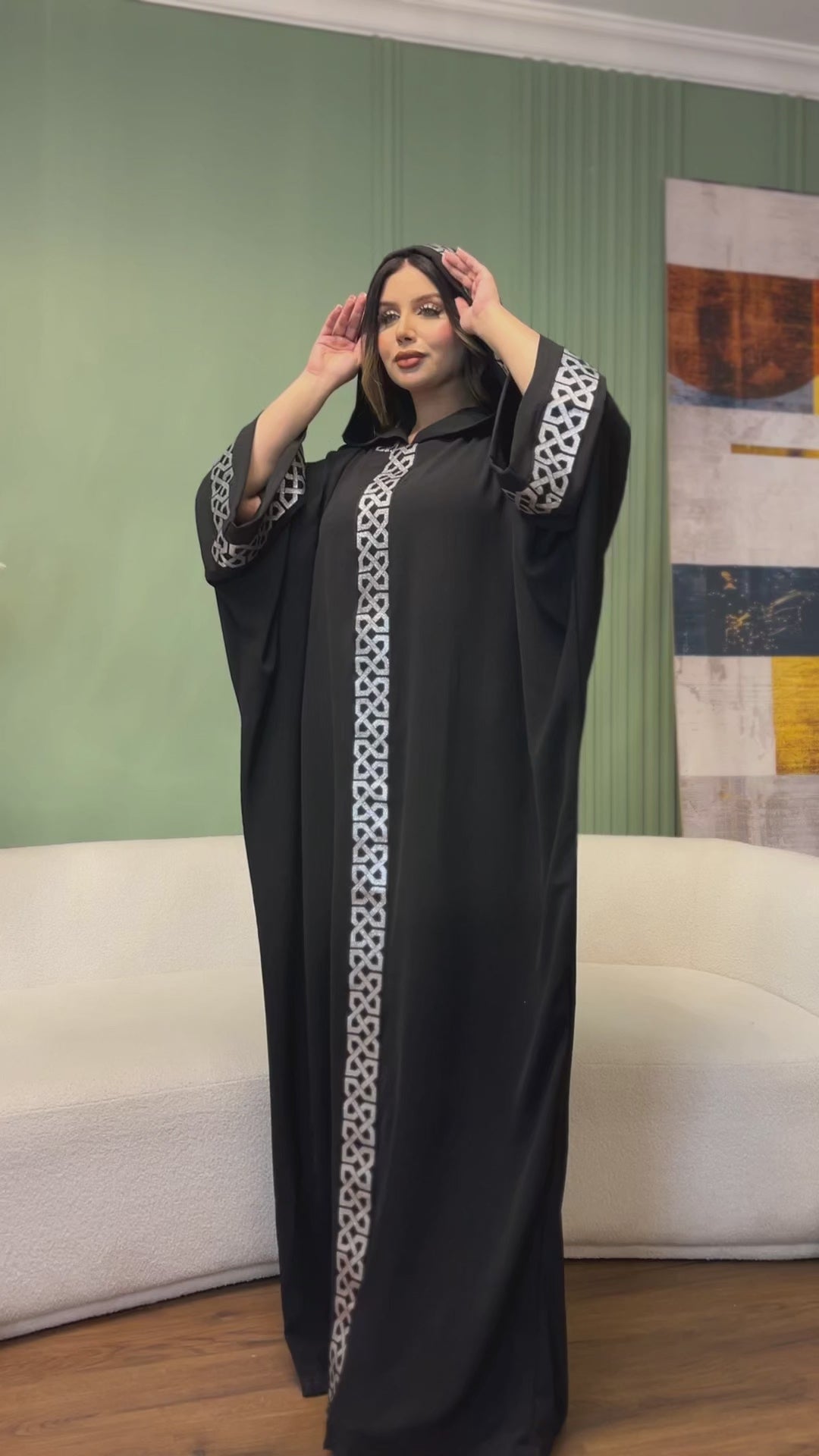 إسدال مغربي كريب سي واي مع شريط تطريز، وياقة وكابشو.