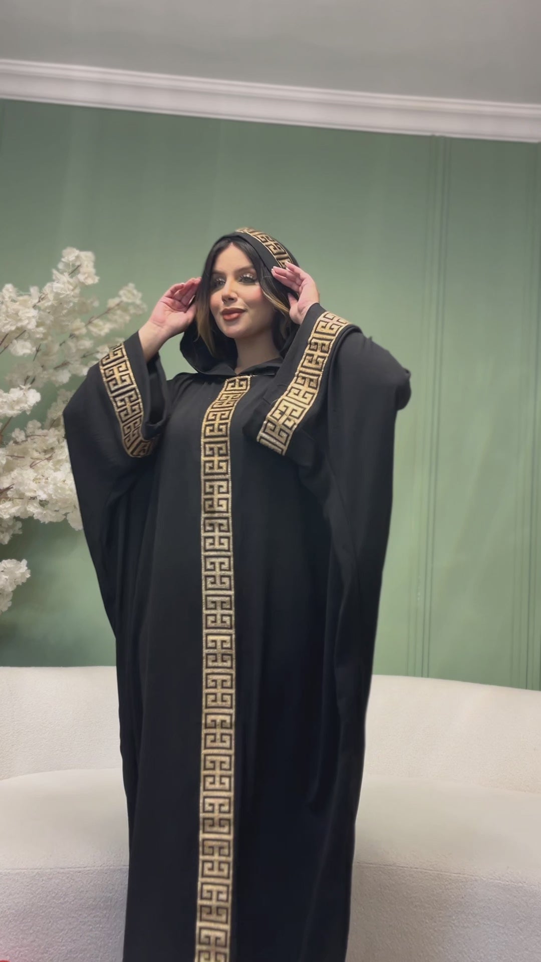 إسدال مغربي كريب سي واي مع شريط تطريز، وياقة وكابشو.