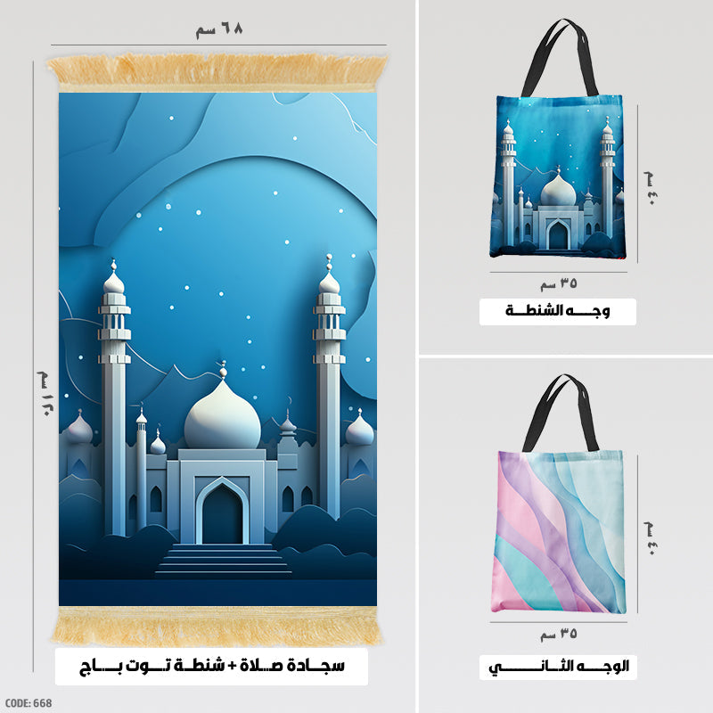 سجادة صلاة + شنطة توت باج (مطبوع)