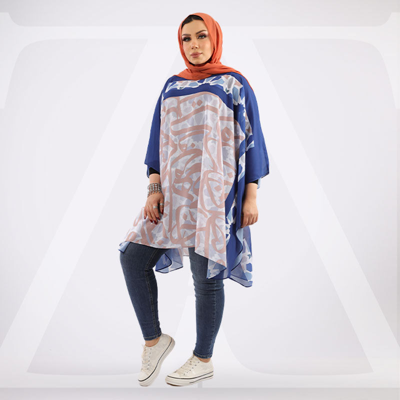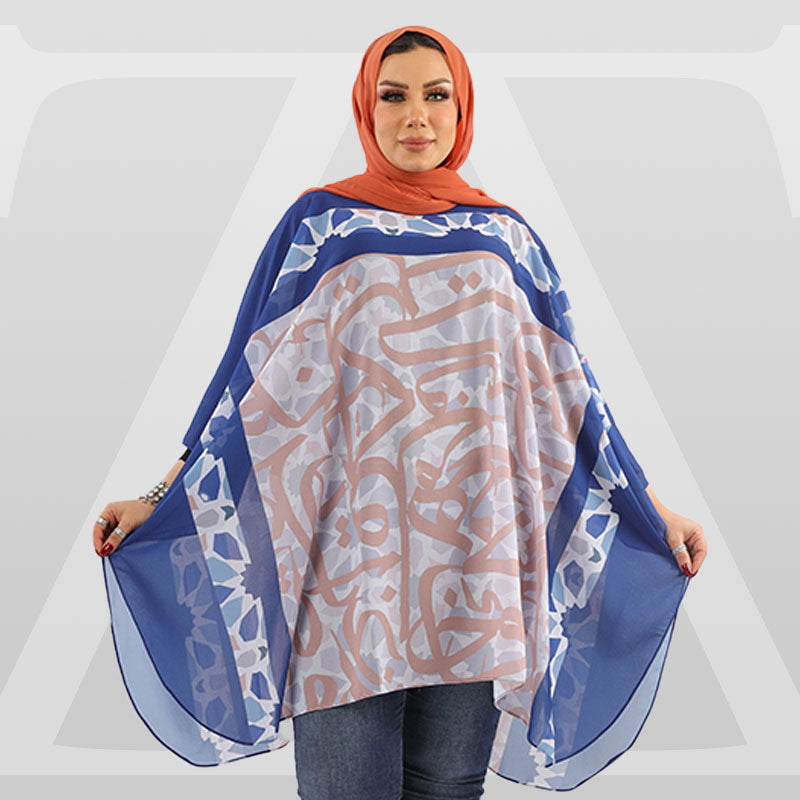 بونشو شيفون بدون بطانة مطبوعة ديجيتال من تصميماتنا الخاصة