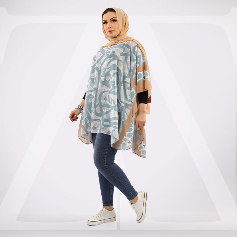 بونشو شيفون بدون بطانة مطبوعة ديجيتال من تصميماتنا الخاصة