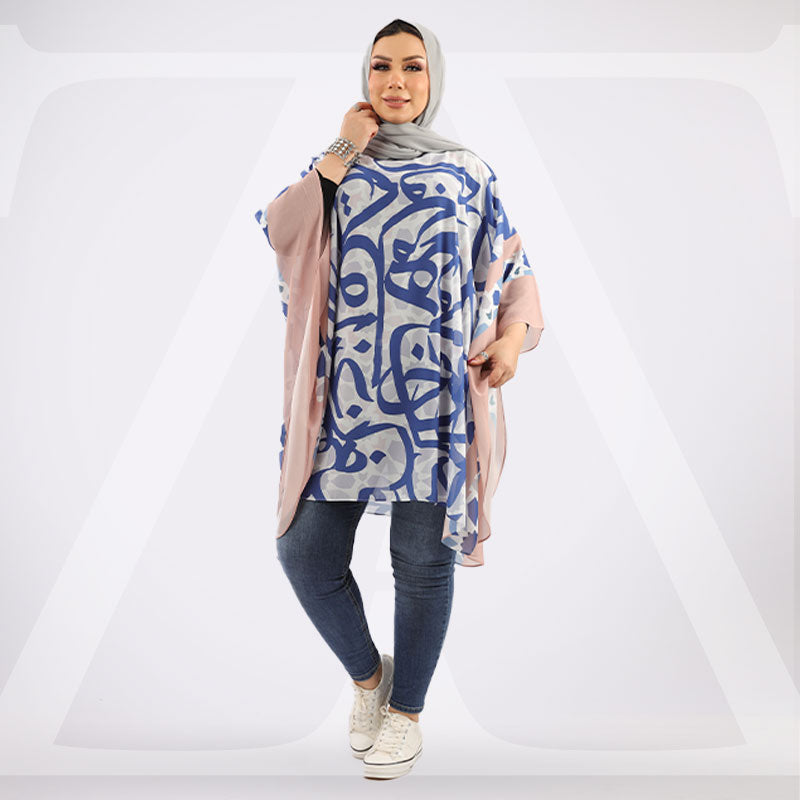بونشو شيفون بدون بطانة مطبوعة ديجيتال من تصميماتنا الخاصة