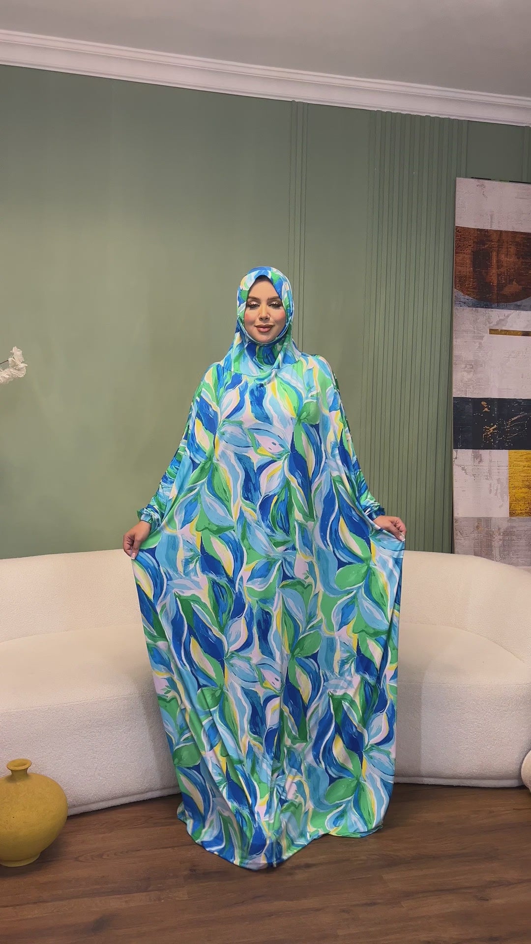 ثوب صلاة (إسدال) جيرسيه ليكرا مع غطاء الرأس من تصميماتنا الخاصه