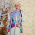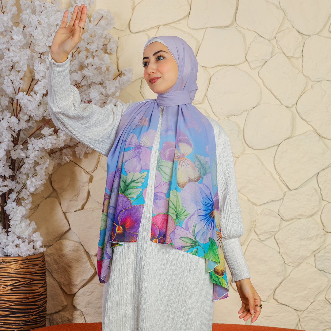 شيلة كريب شيفون خفيف تصميم و طباعة ديجيتال من تصميماتنا الخاصة ٢٠٠سم × ٧٠ سم