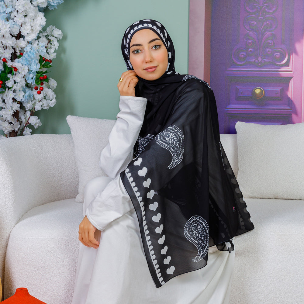 شيلة كريب شيفون خفيف تصميم و طباعة ديجيتال من تصميماتنا الخاصة ٢٠٠سم × ٧٠ سم