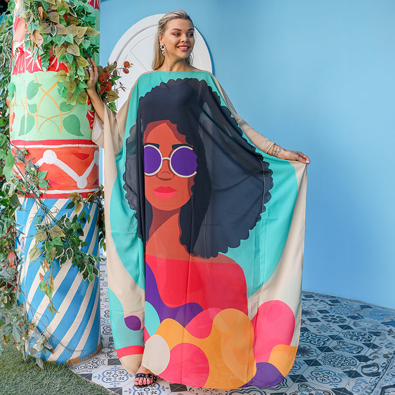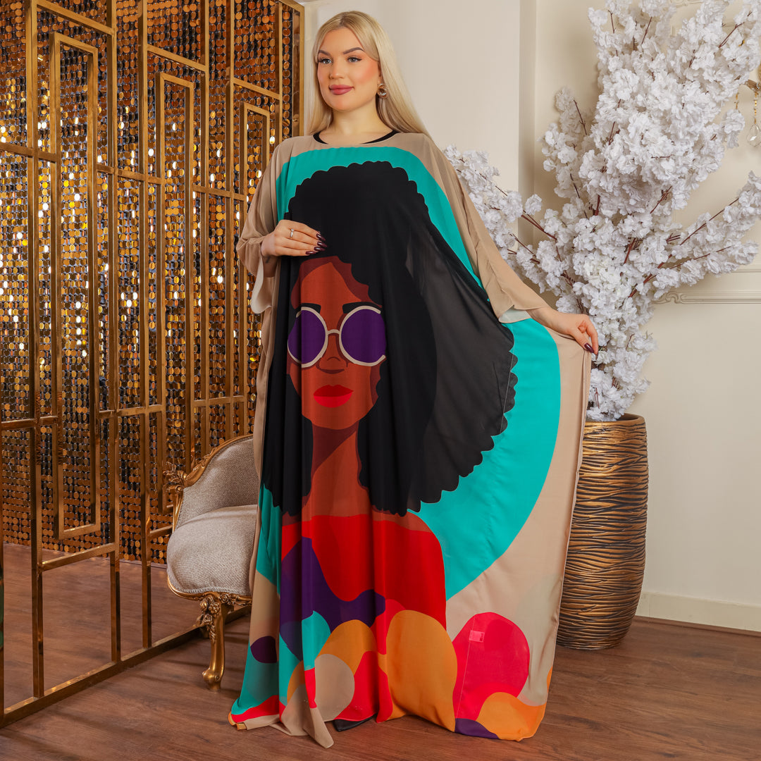 چلابية شيفون شفاف بدون بطانة طباعة ديجيتال من تصميماتنا الخاصة