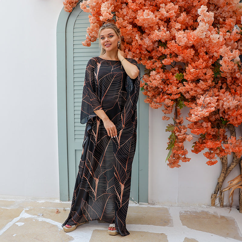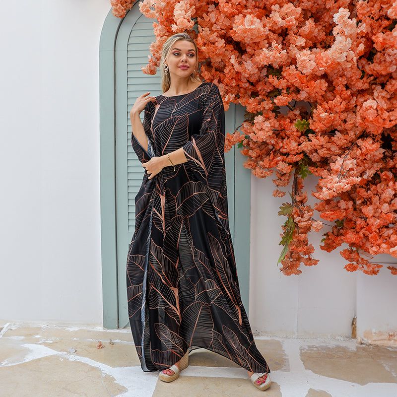 چلابية شيفون شفاف بدون بطانة طباعة ديجيتال من تصميماتنا الخاصة