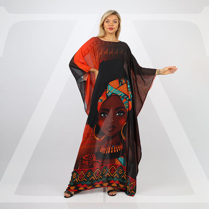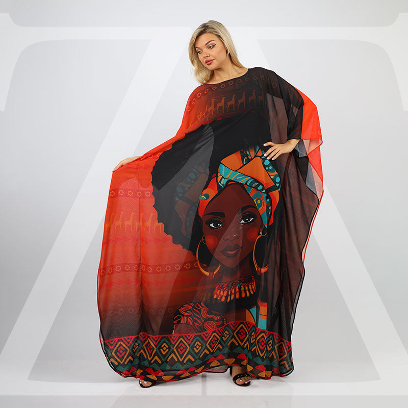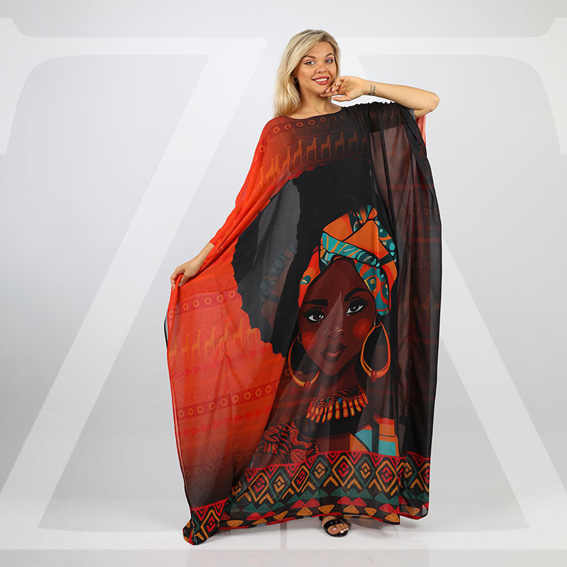 چلابية شيفون شفاف بدون بطانة طباعة ديجيتال من تصميماتنا الخاصة
