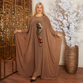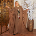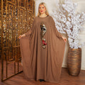 چلابية شيفون شفاف بدون بطانة بأبليك تطريز وجوه ترتر
