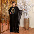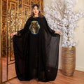 چلابية شيفون شفاف بدون بطانة بأبليك تطريز وجوه ترتر