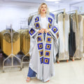 قفطان حرير ستان ناعم مزين بأباليك تطريز ترتر فري سايز يناسب ٧٠ك إلى ١٣٠ك