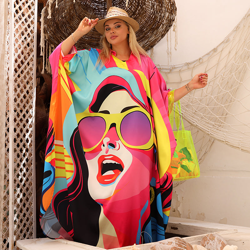 دريس حرير ستان أرماني طباعة ديجيتال من تصميماتنا الخاصة فري سايز يناسب ٧٠ك إلى ١٣٠ك تصميم فراشة