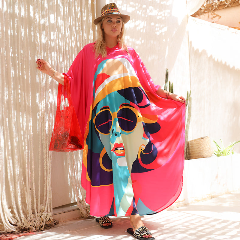 دريس حرير ستان أرماني طباعة ديجيتال من تصميماتنا الخاصة فري سايز يناسب ٧٠ك إلى ١٣٠ك تصميم فراشة