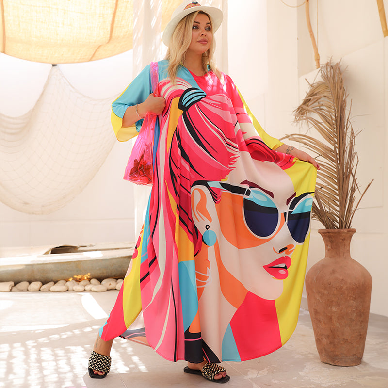 دريس حرير ستان أرماني طباعة ديجيتال من تصميماتنا الخاصة فري سايز يناسب ٧٠ك إلى ١٣٠ك تصميم فراشة
