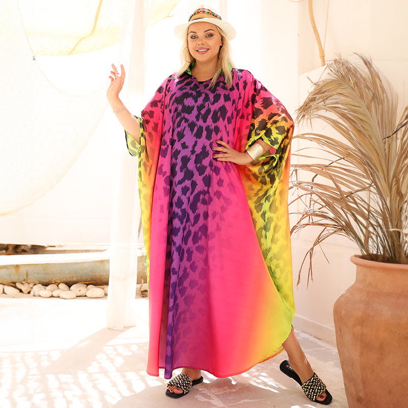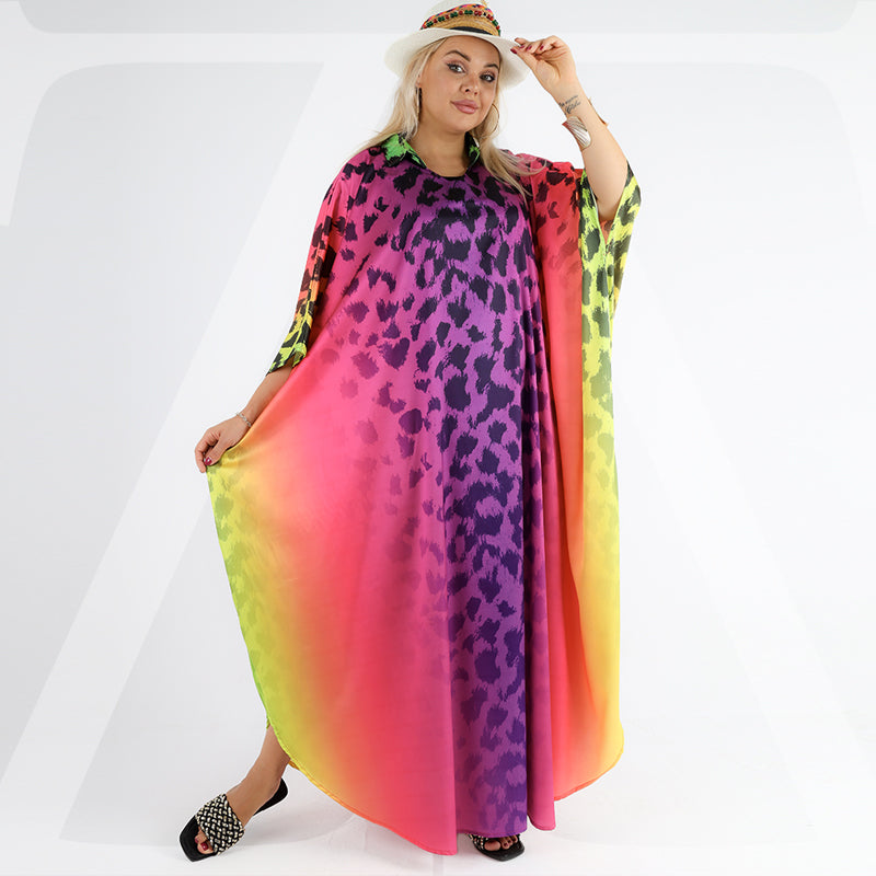 دريس حرير ستان أرماني طباعة ديجيتال من تصميماتنا الخاصة فري سايز يناسب ٧٠ك إلى ١٣٠ك تصميم فراشة