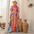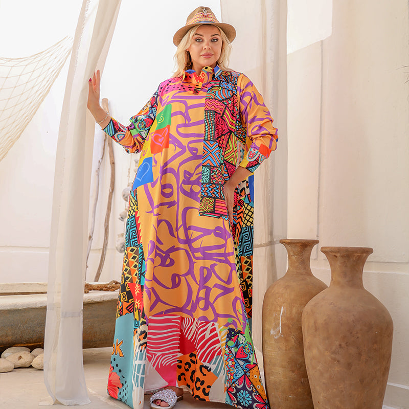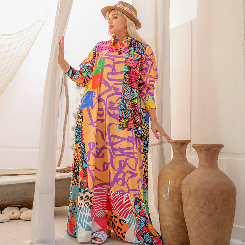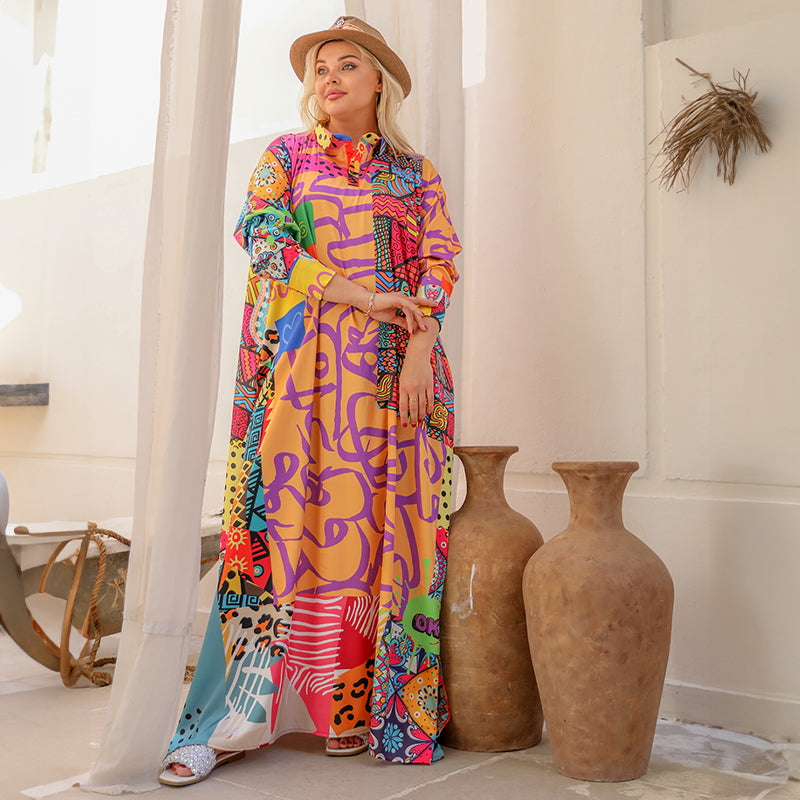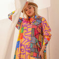 دريس حرير ستان أرماني بأكمام طباعة ديجيتال من تصميماتنا الخاصة فري سايز يناسب ٧٠ك إلى ٩٠ك و الطول من الكتف ١٤٠سم