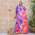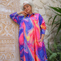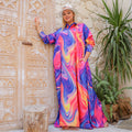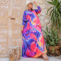 دريس حرير ستان أرماني بأكمام طباعة ديجيتال من تصميماتنا الخاصة فري سايز يناسب ٧٠ك إلى ٩٠ك و الطول من الكتف ١٤٠سم