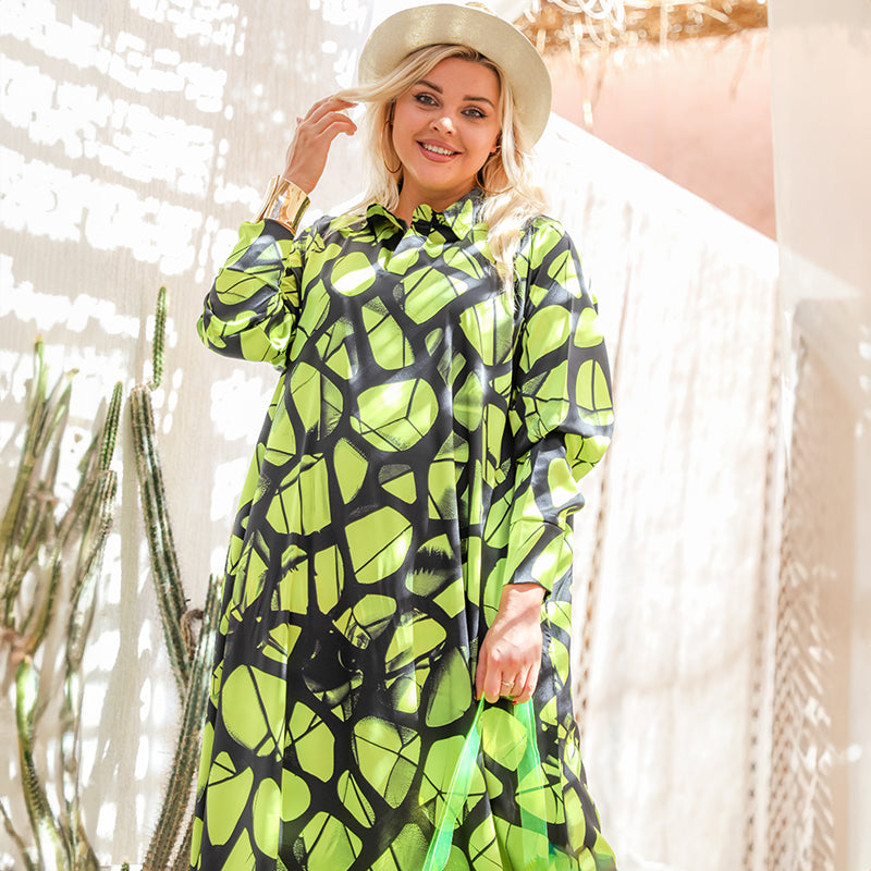 دريس حرير ستان أرماني بأكمام طباعة ديجيتال من تصميماتنا الخاصة فري سايز يناسب ٧٠ك إلى ٩٠ك و الطول من الكتف ١٤٠سم