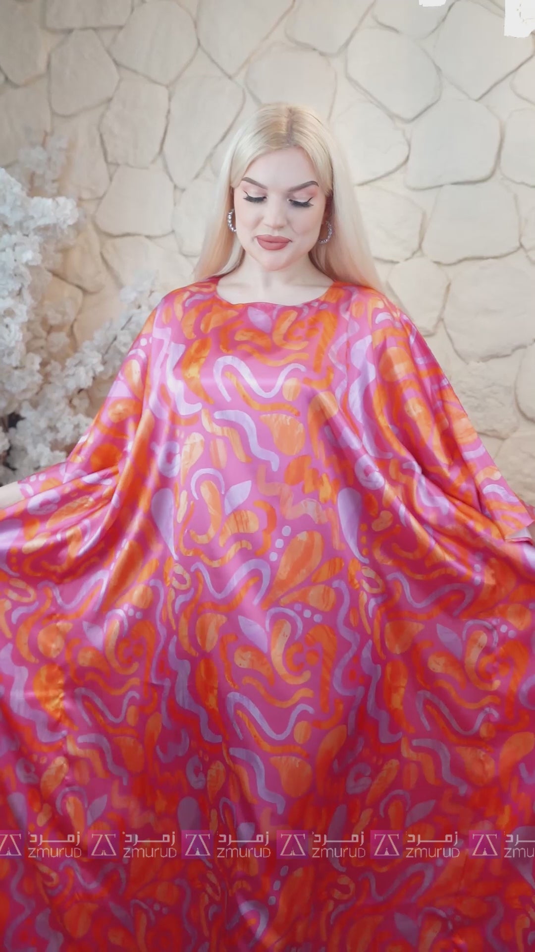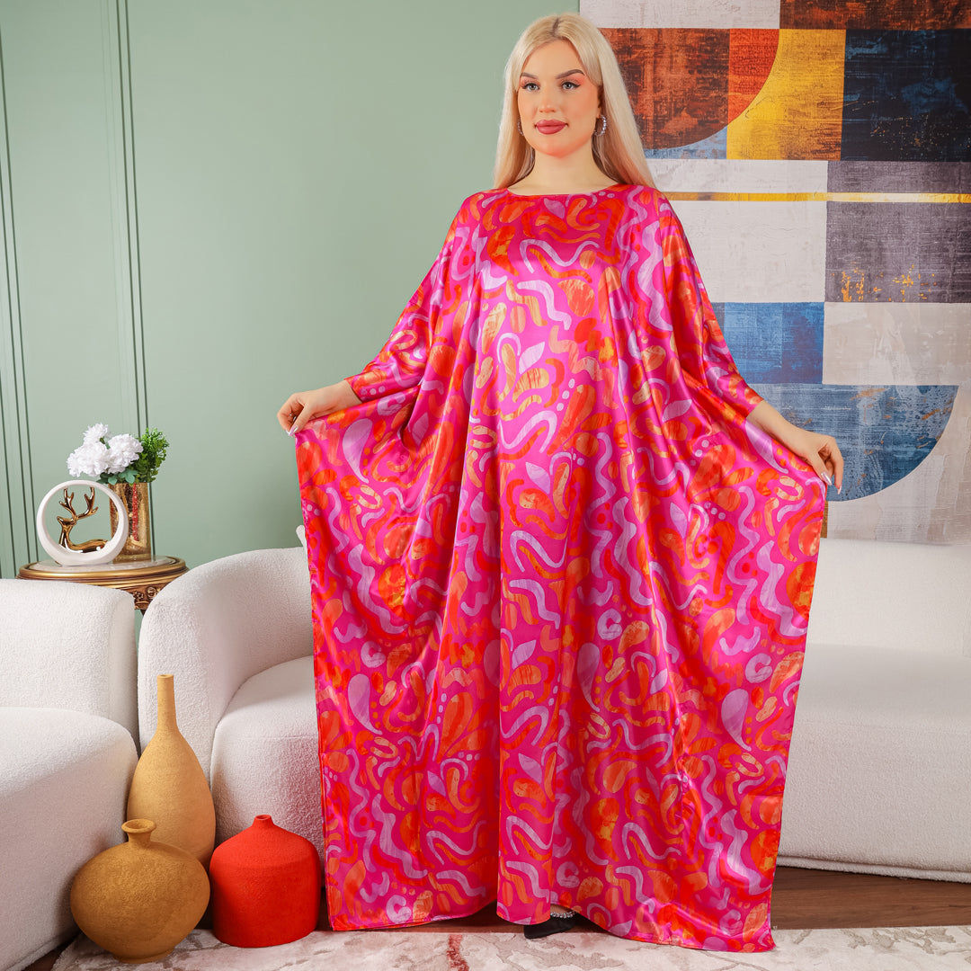 چلابية حرير ستان طباعة ديجيتال من تصميماتنا الخاصة فري سايز تناسب من ٧٠ ك إلى ١٣٠ك