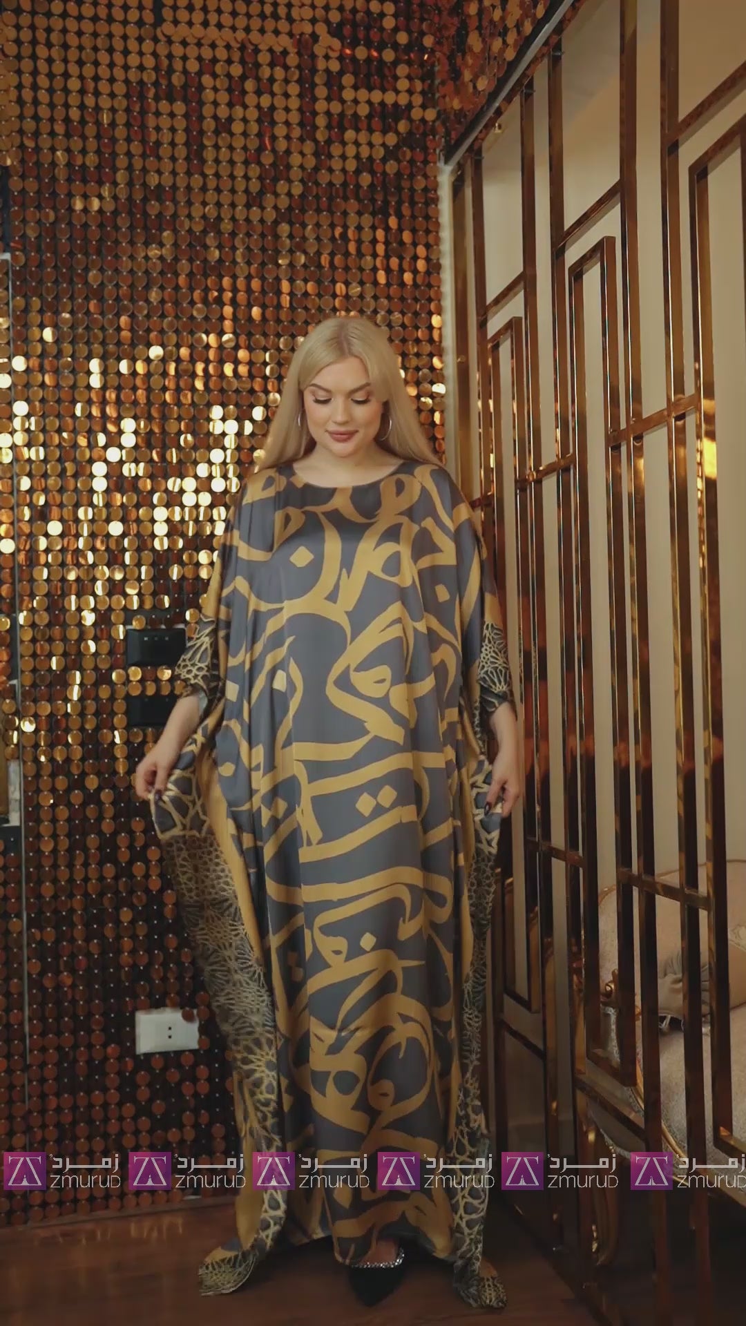 چلابية حرير ستان طباعة ديجيتال من تصميماتنا الخاصة فري سايز تناسب من ٧٠ ك إلى ١٣٠ك