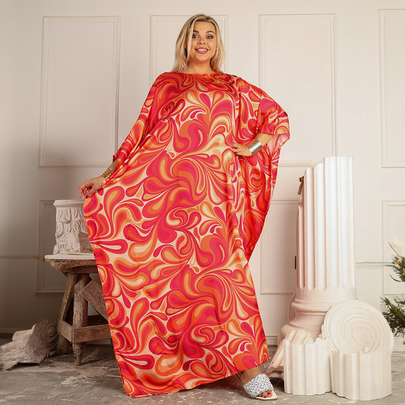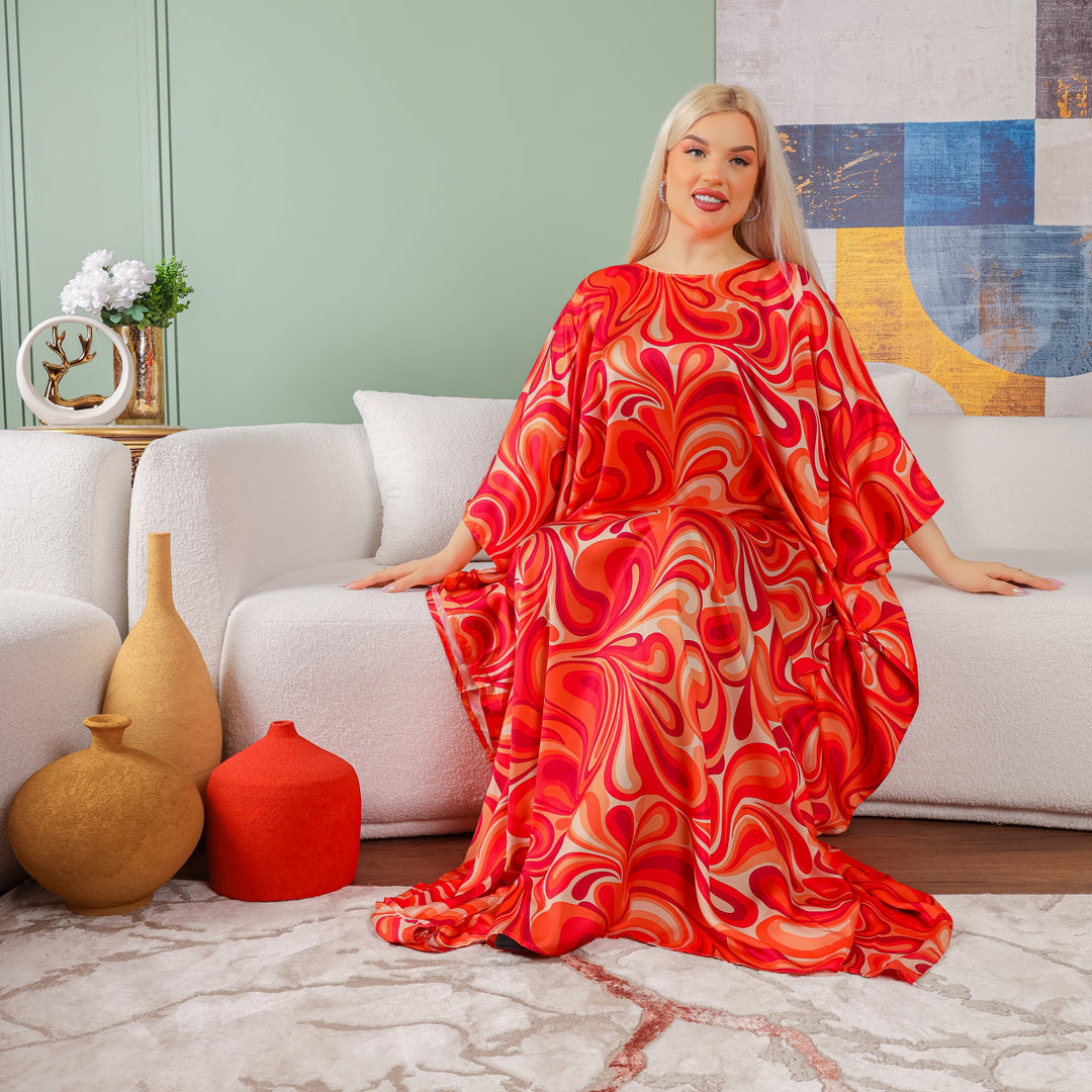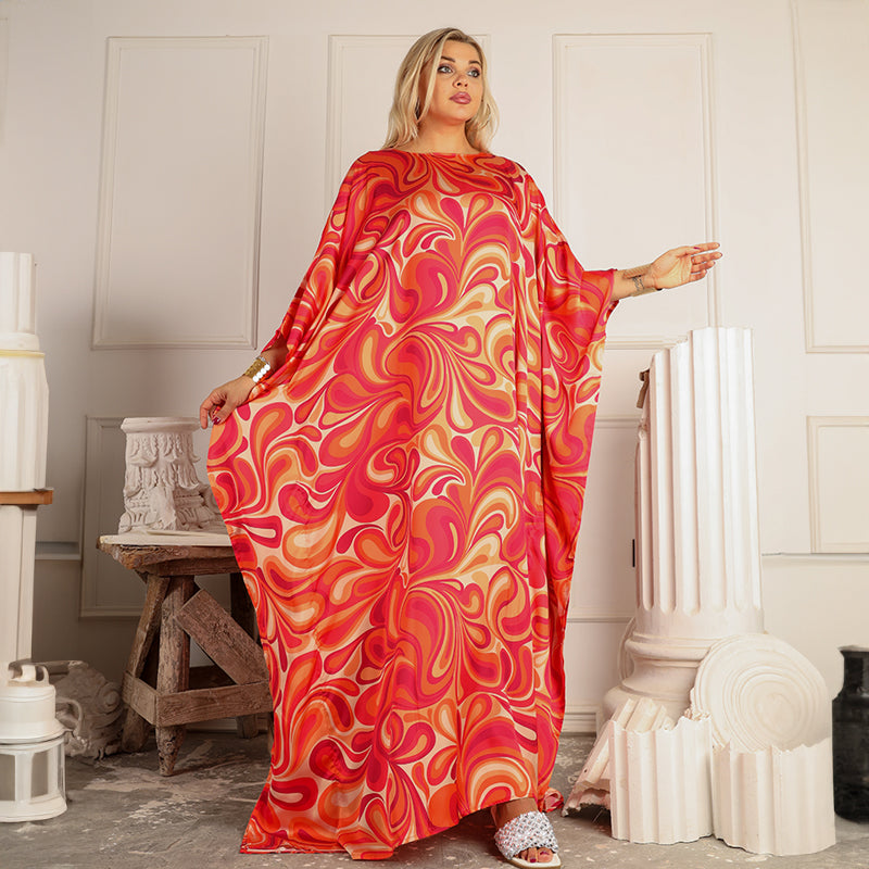 چلابية حرير ستان طباعة ديجيتال من تصميماتنا الخاصة فري سايز تناسب من ٧٠ ك إلى ١٣٠ك