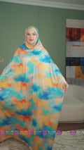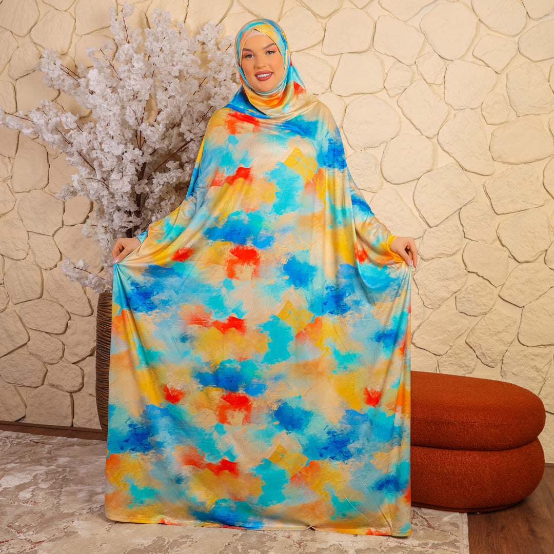 ثوب صلاة (إسدال) بحريني عملي سوفت قطن طباعة ديجيتال فري سايز يناسب من 70ك إلى 100ك مع غطاء الرأس